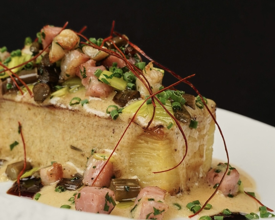 Что может быть лучше, чем жаренная картошка на чугунной сковородке? Та самая - с корочкой, свежим лучком и ароматом масла. А к ней обязательно овощной салат с жирной сметаной, который черпаешь большой ложкой и без устали накладываешь в тарелку. Таким простым и понятным было детство у шефа Антона Тихого из Рыбторга. В столичных реалиях воспоминания обрели вид более творческий, художественный и загадочный: овощной салат подают с эстрагоном и йогуртом, а из картофеля готовят гратен с папоротником, трубачом и соусом из бекона, но и про луковый свежий доппинг не забывают. Все-таки, некоторые воспоминания ничем не заменить.