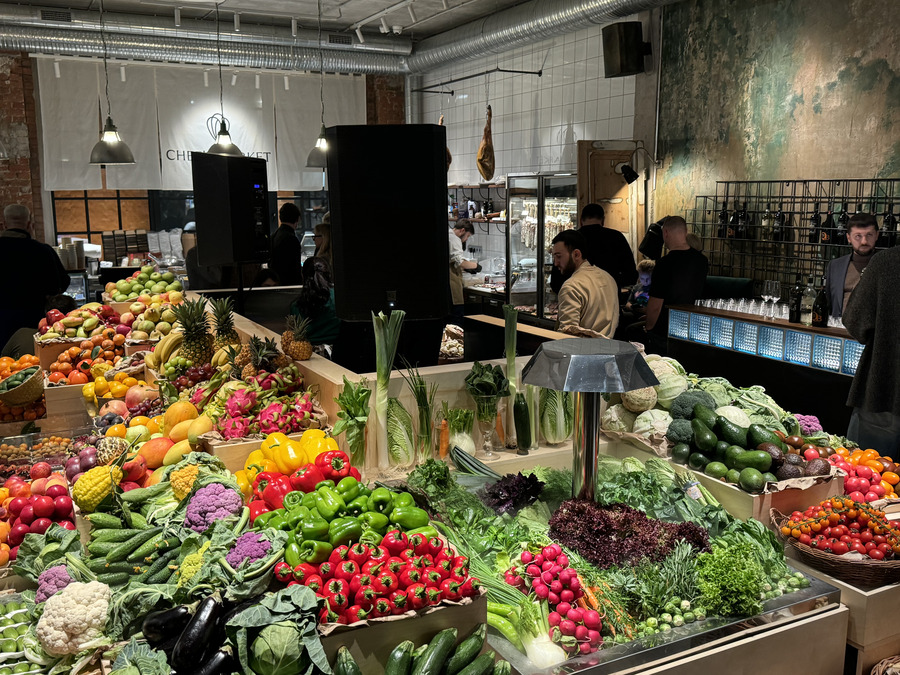 Главное пространство Greens разделено на две части. Первая — это Chef’s Market, зона, которая объединила трёх звёздных шефов: Кирилл Еселев, бренд-шеф ресторанов «Каспийка», ведущий кулинарных шоу и постоянный эксперт телепроектов. Его подход сочетает экспертизу в работе с морепродуктами и стремление к инновациям. Кирилл отвечает за RAW-бар с рыбой и морепродуктами, где подают свежайшие маки с лососем (740 ₽), сашими из гребешка (1 300 ₽) и тар-тар из лосося (1 460 ₽).