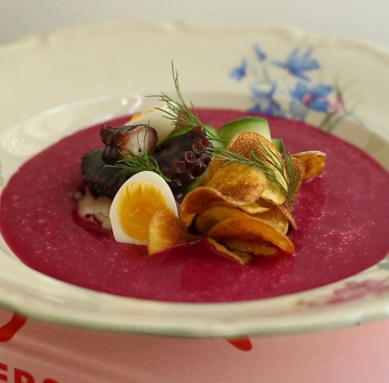 О том, что чипсы сочетаются с вином ещё в начале августа нам рассказывала винный эксперт Влада Лесниченко в пространстве «Море музыки», предлагая ощутить сочетание на собственном языке в рамках дегустации «Вино и чипсы». О том, что хруст и холод - любимое летнее сочетание столичных шефов, это мы узнаем самостоятельно. Конечно же, речь идет о свекольниках и холодниках, что становились чуть «звонче» за счет добавления тонких обжаренных «чешуек». Так, в Публике холодный суп из запечёной свеклы с вишней и айраном (800₽) дополняли хрустящими слайсами батата сверху - выходило сносно и гармонично.