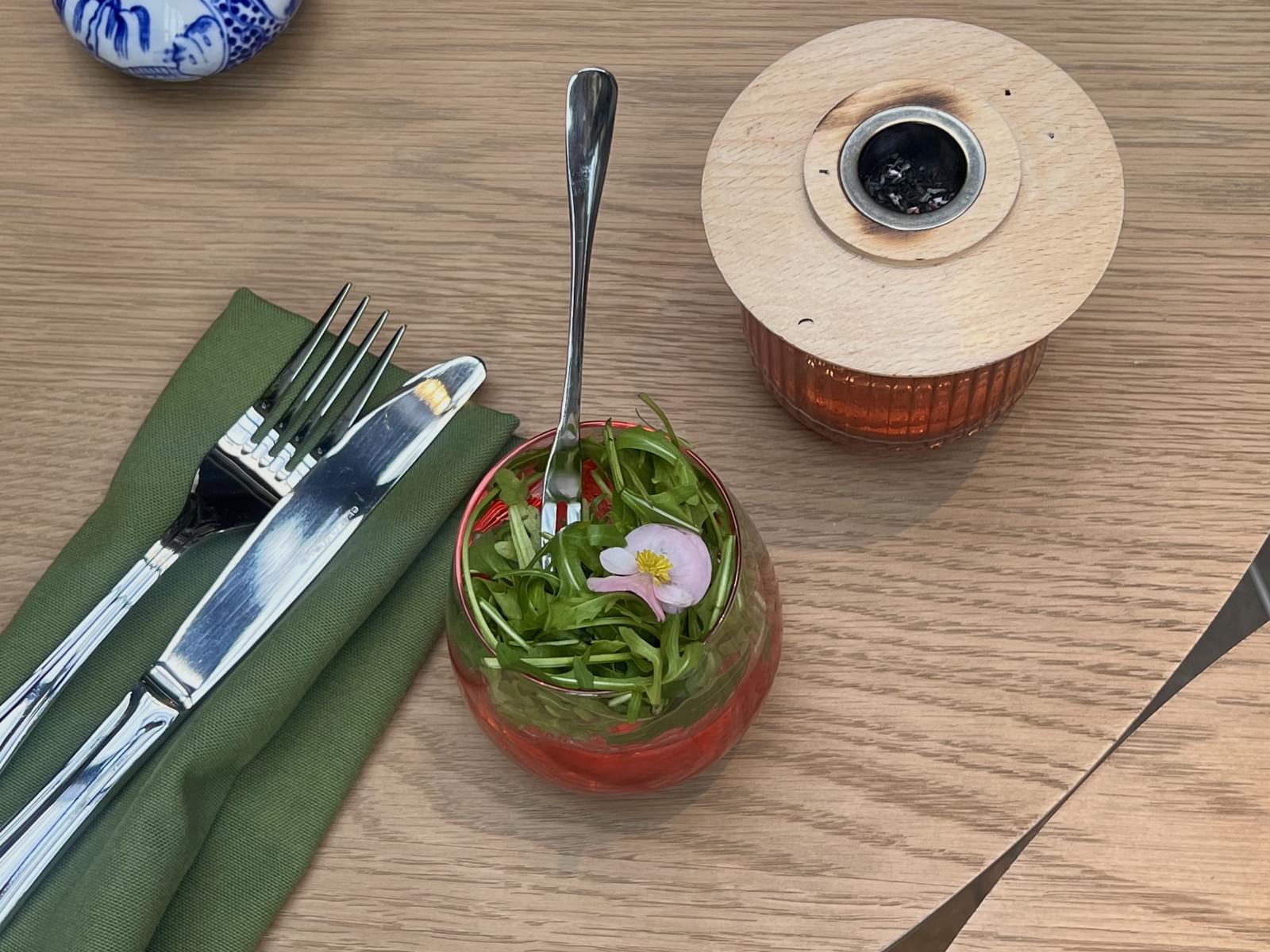 С коктейлями, к слову, тоже «по-оригинальничали»: в одном бокале нас поджидает дым и копоть, другой подают с̶ н̶а̶м̶е̶к̶о̶м̶ н̶а̶ З̶О̶Ж̶ с шапкой кинзы.