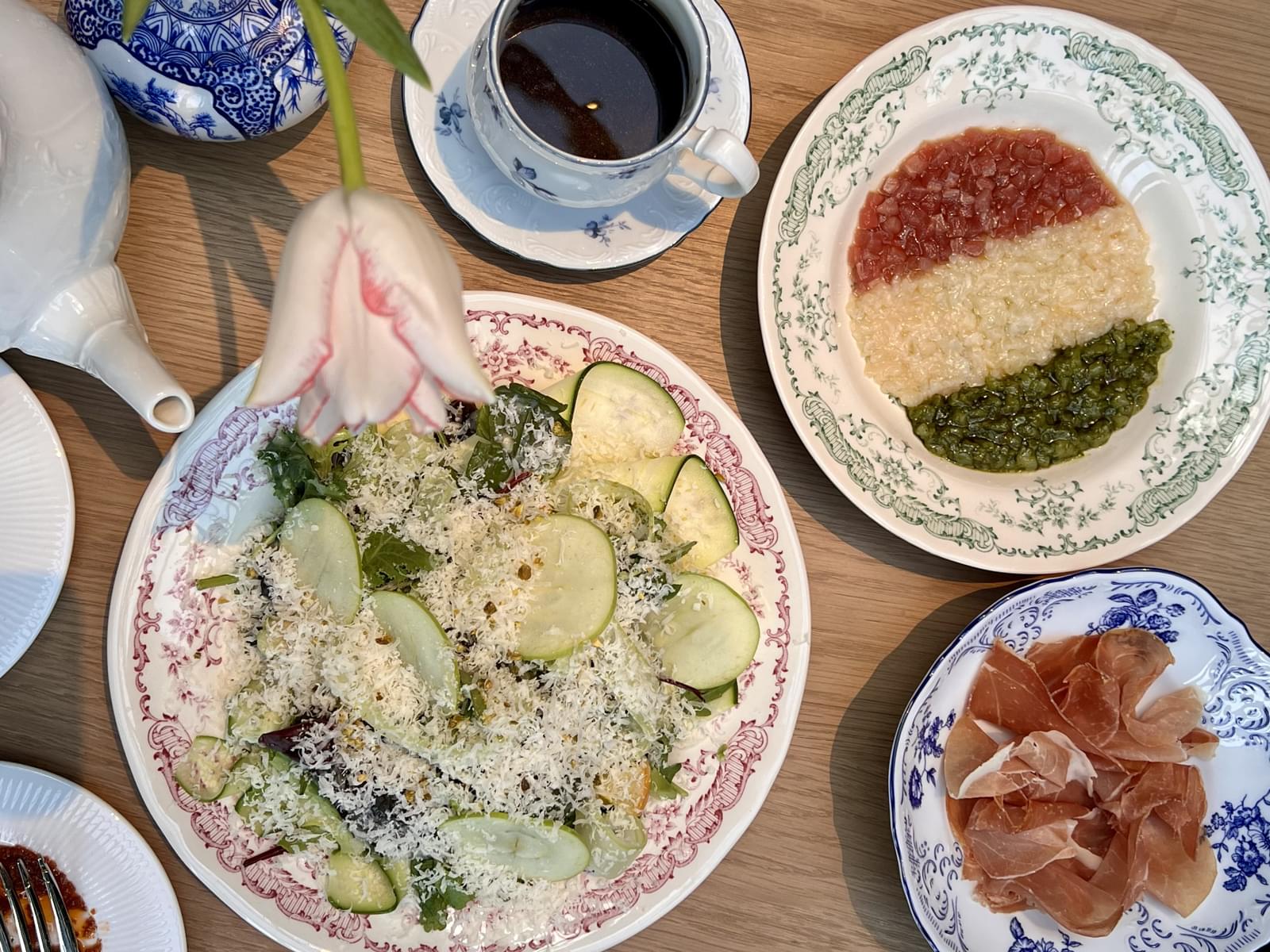 За кухню под знаком итальянского флага и флорентийской узорности отвечает молодой и щепетильный шеф Андрей Лапин. Он, опять таки, знаком нам все по тем же проектам — Blanc и Yauza Place.