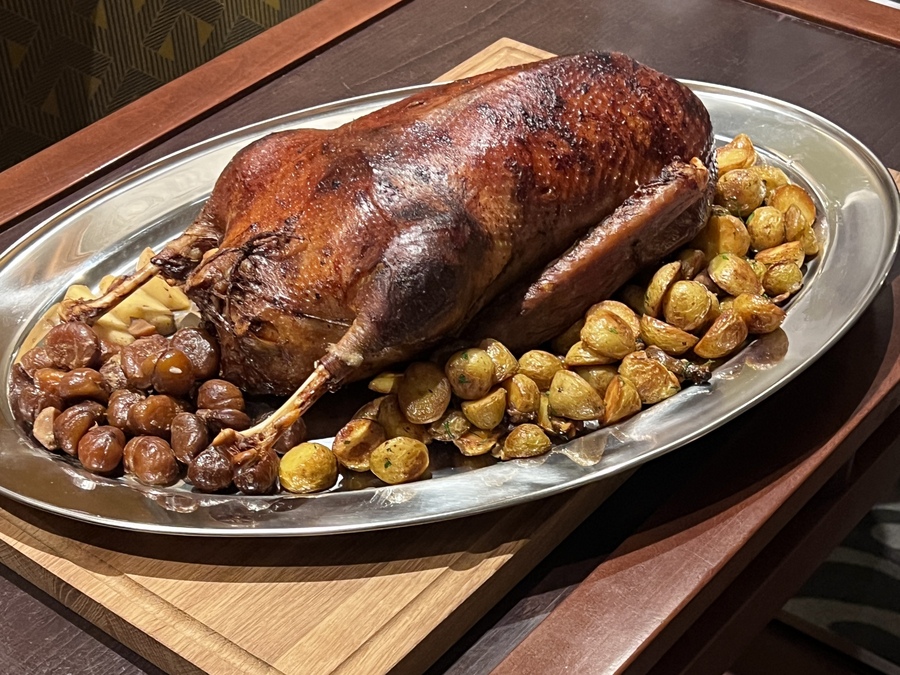 Ароматного гуся с молодым картофелем, каштанами и белыми грибами запекают в предверии Рождества в ресторане Le carré на Садовнической.