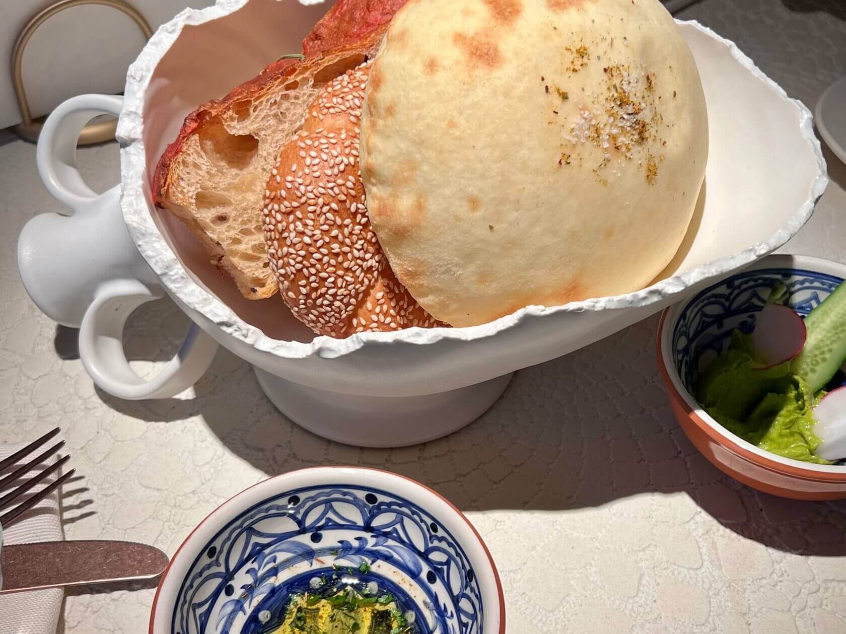 Стоит сказать о маленькой несправедливостью: к мезе не подают лепёшку, её можно заказать отдельно или же сразу замахнуться на большое ассорти хлеба (650₽).