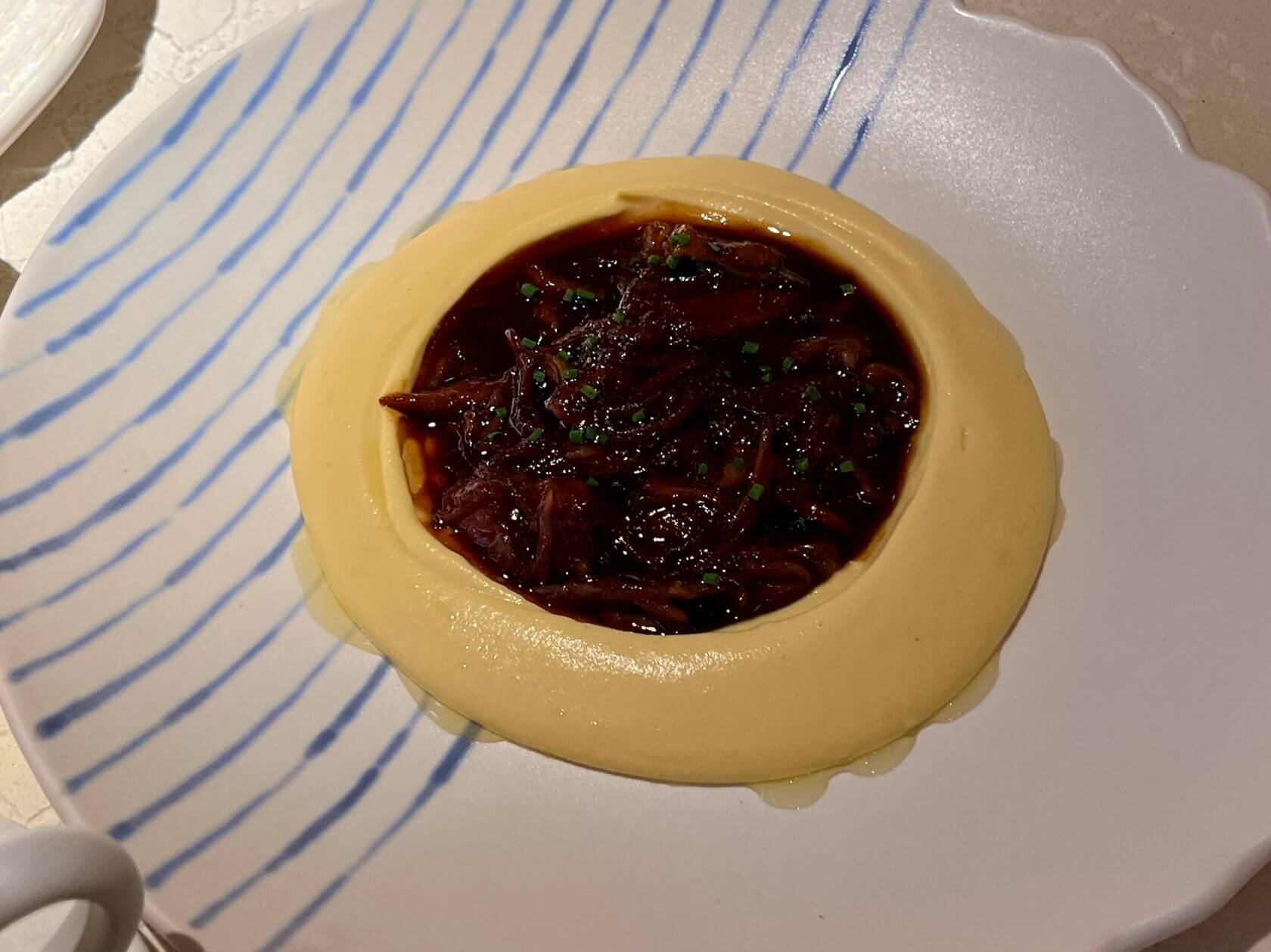 Из закусок стоит попробовать мезе на современный московский лад: фаву с бычьими хвостами (900₽), которая растекается нежным однородным шёлком во рту.