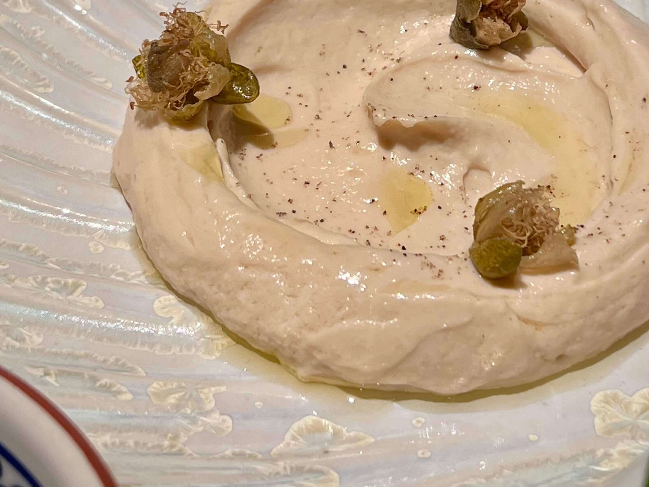 Или тараму со свежими овощами (550₽). Приносят её на перламутровой тарелке-ракушке, такой же блестящей как и сама тарама, когда по ней скользишь питой.