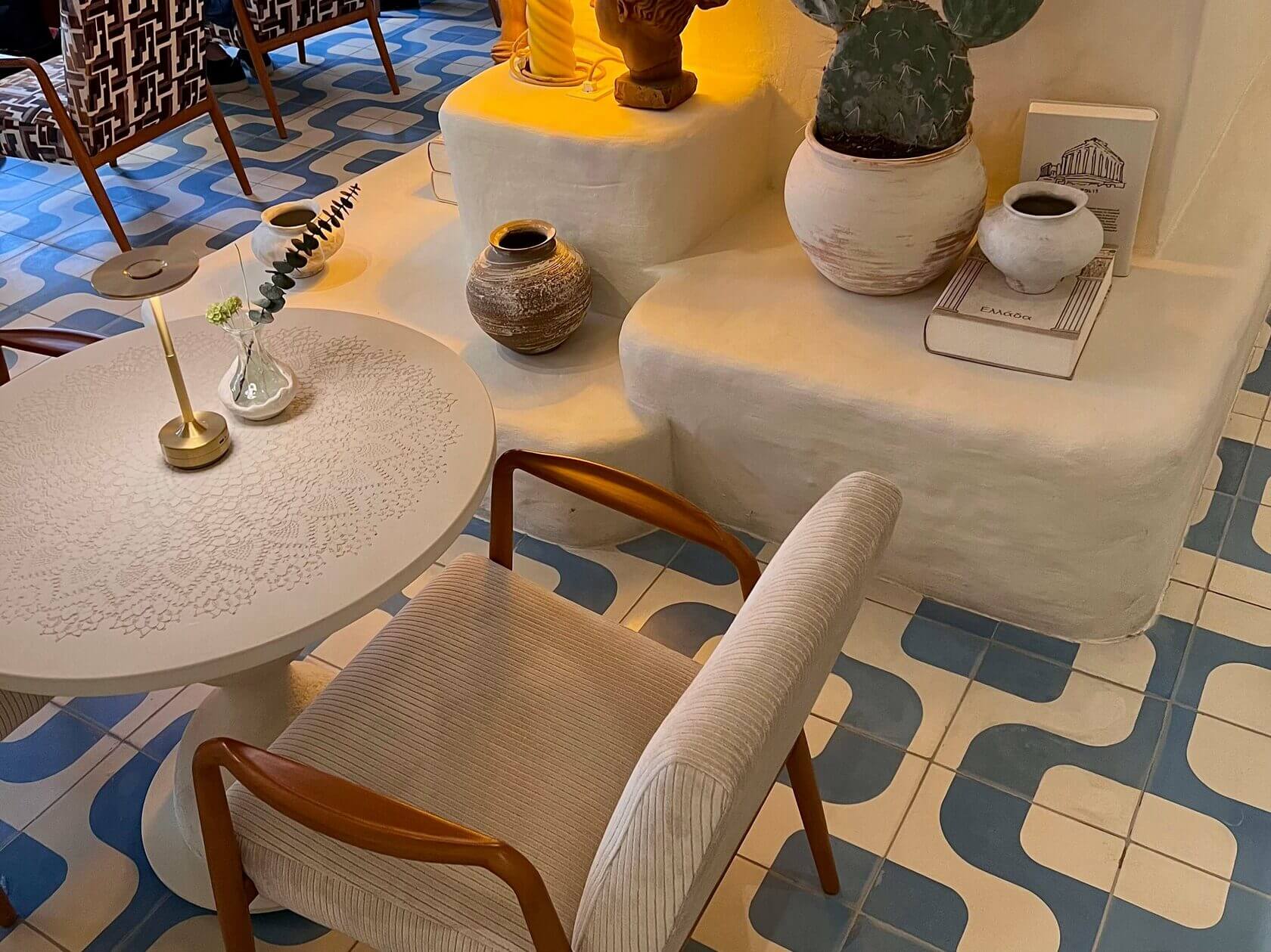 Первый этаж отвели под светлую брассери — тепло, уютно и как будто гуляешь по греческим улочкам. На втором разместили ресторанную зону с отдельным меню и большой рыбной витринной. Интерьеры вторят античной элитарности — колонны, изящные вазы, статуи. На третьем этаже обещают клуб и битье тарелок после сытного ужина.