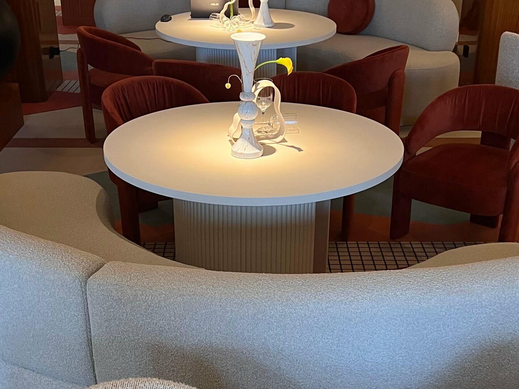 Но если вам чаще везёт в брони ресторана, чем в любви, то приходите сюда компанией: обсудить можно не только дела насущные, но и меню, наряды официантов, напоминающие древнегреческие тоги, а то и бюджет всего высокопарно расположившегося по периметру. Специально для компаний в меню есть пометка «to share», что означает взять в стол и разделить на всех. Среди больших тарелок: буррата со свежими томатами, сардинами и песто (1300₽), карпаччо из говядины с чёрным трюфелем (900₽).