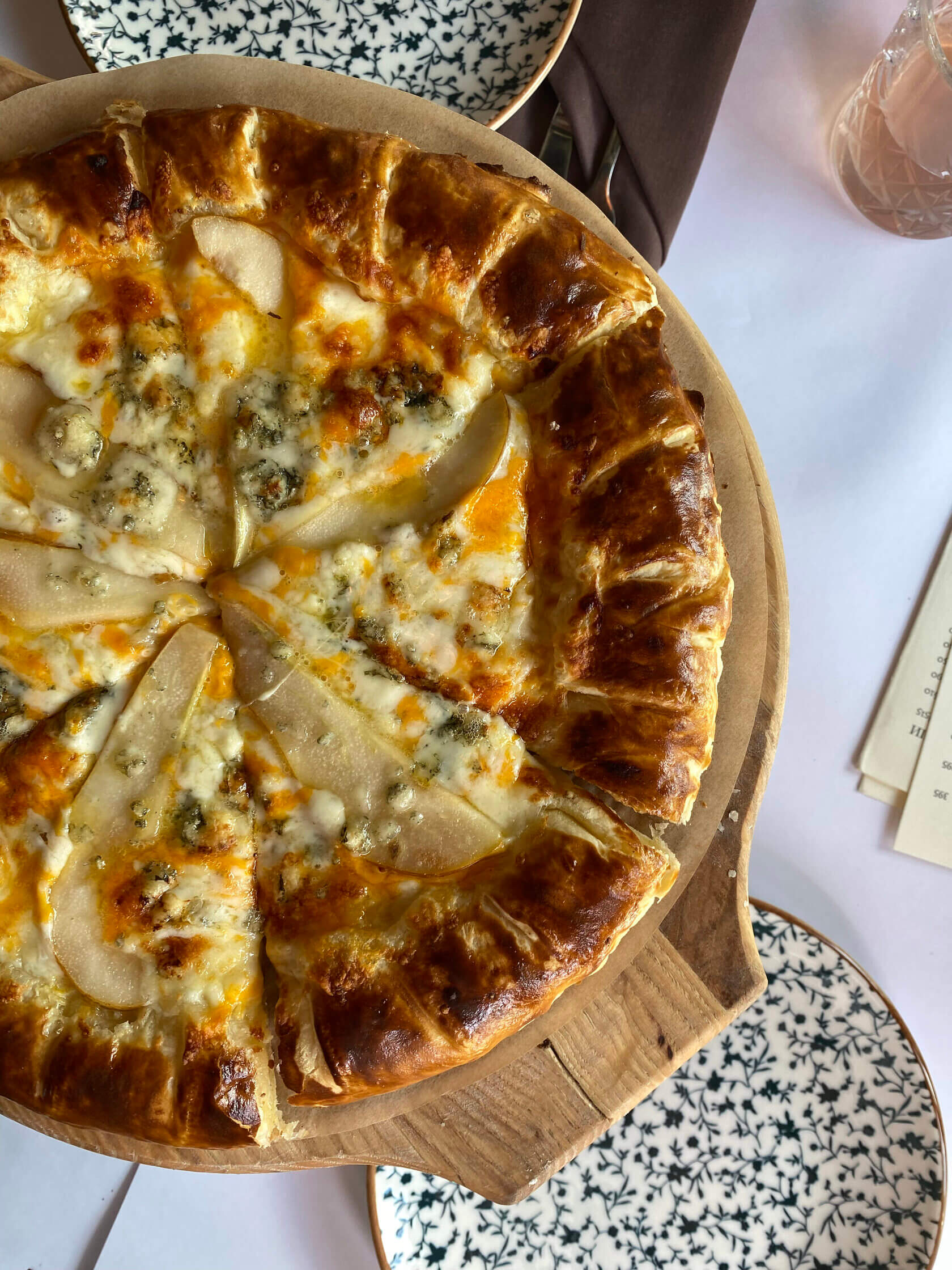 Хачапури «пять сыров» с грушей – нельзя назвать хачапури и нельзя назвать пиццей, это и есть та самая авторская грузинская кухня от "Батони". Как итог, очень и очень вкусно.
