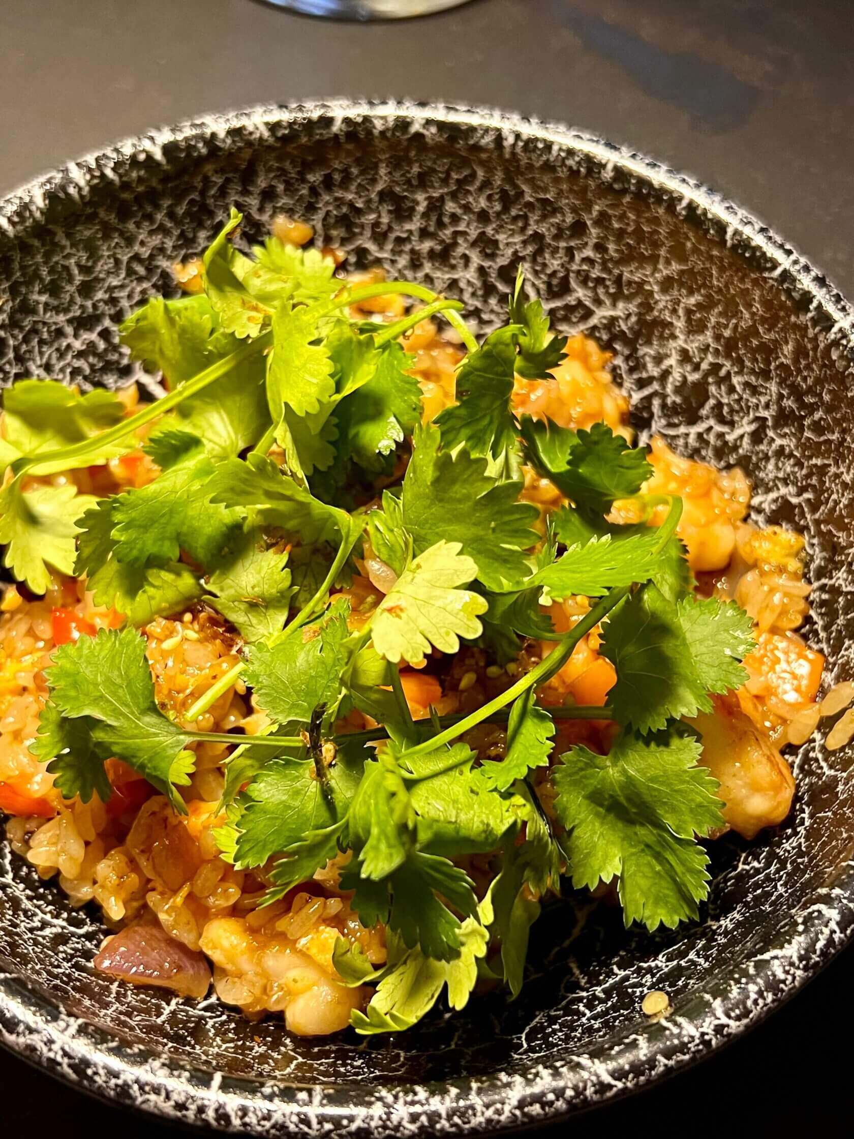 Отдельного внимания от нашей редакции заслужил жареный рис с креветками и овощами (750₽), прикрытый зеленью. Вероятно, для того, чтобы его не сглазили. Уж больно хорош!