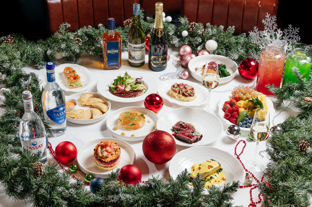 Гостей ждёт все, что душе угодно: олюторская сельдь, икра с блинчиками, преступно вкусное сациви из раков, ассорти из рыбы, мяса и сыров, неувядающие «Оливье» с рябчиком и зеленый салат с лососем собственного копчения, пирожки и хачапури, утка в яблоках, долма с осетриной, голубцы с лангустинами, стерлядь, палтус, рибай, авторский торт, ассорти советских десертов и прочие радости жизни. Праздник не обойдется без поздравления от Деда Мороза с щедрыми подарками, начиная от косметики и заканчивая поездкой на Мальдивы!