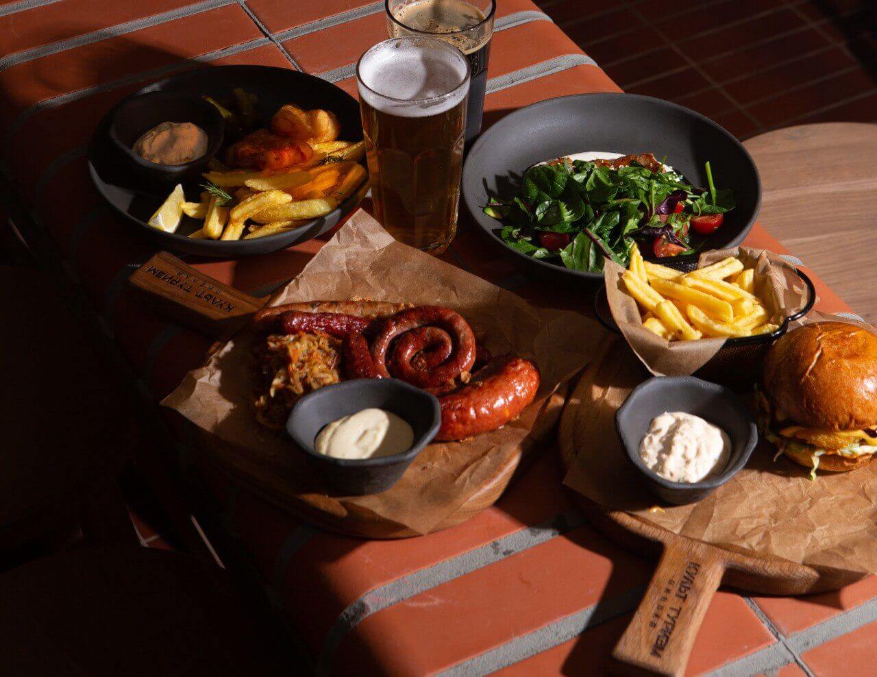 «Передвигаясь» по странам через меню, можно открыть для себя гастрономические традиции разных народов: от фиш энд чипс из Лондонского Сохо (440₽) до камчатских креветок в пиве (870₽). На кранах — 20 пивных позиций, а в барной карте много настоек и нешаблонный выбор крепких напитков.