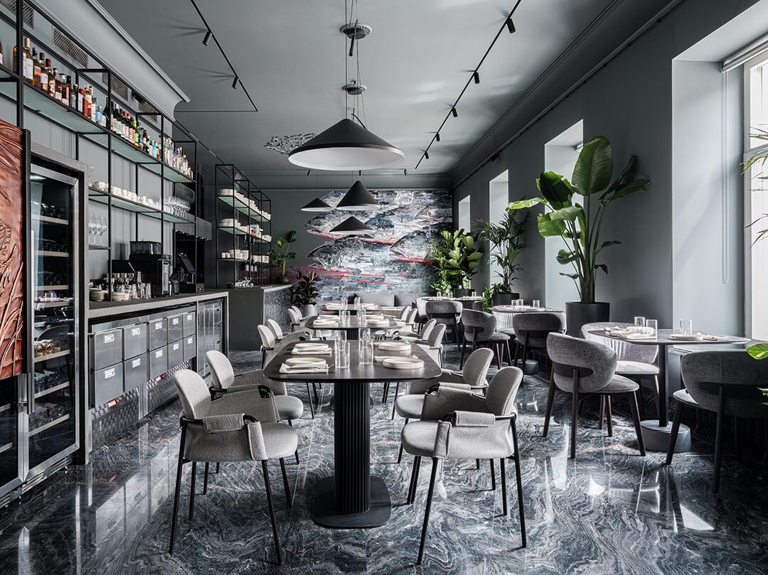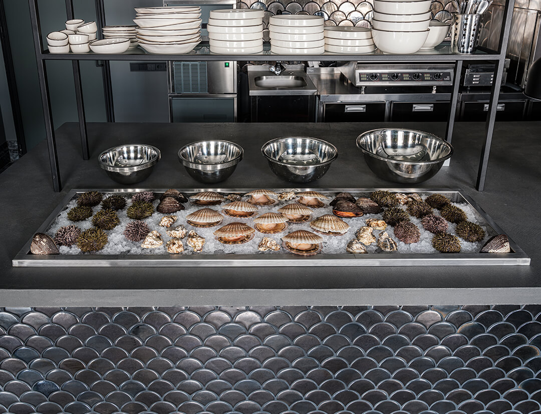 Шеф-повар Егор Попов отдает свое предпочтение натуральным вкусам, поэтому вы не найдете здесь сложных кулинарных техник, а только натуральные способы приготовления. В меню: севиче из спинки с «тигриным молоком» и томатами, сашими из спинки форели с японским понзу и ягодами красной смородины, неклассический гаспачо с крабом и арбузом, мурманские ежи с желтком и понзу и много других блюд с использованием морепродуктов. В барной карте вина в северной стилистике, а также большое раздел с игристым от сомелье Юлии Ломи.