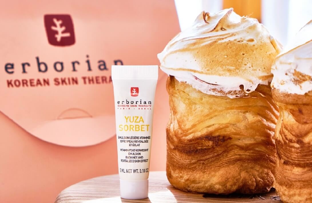 Layerz Bakery встречает лето вместе с Erborian. При заказе краффина с начинкой из дюзу-крема, клубничного конфи и обожженной меренгой на верхушке (450₽), гостей ожидают подарки — набор миниатюр с бестселлерами: увлажняющий дневной крем Юзу Сорбет, корректирующий крем для лица CC RED и крем для лица SKIN HERO, а заодно сертификат на скидку 1500 ₽ (при покупке от 5000₽) в бутиках и на сайте Erborian.
