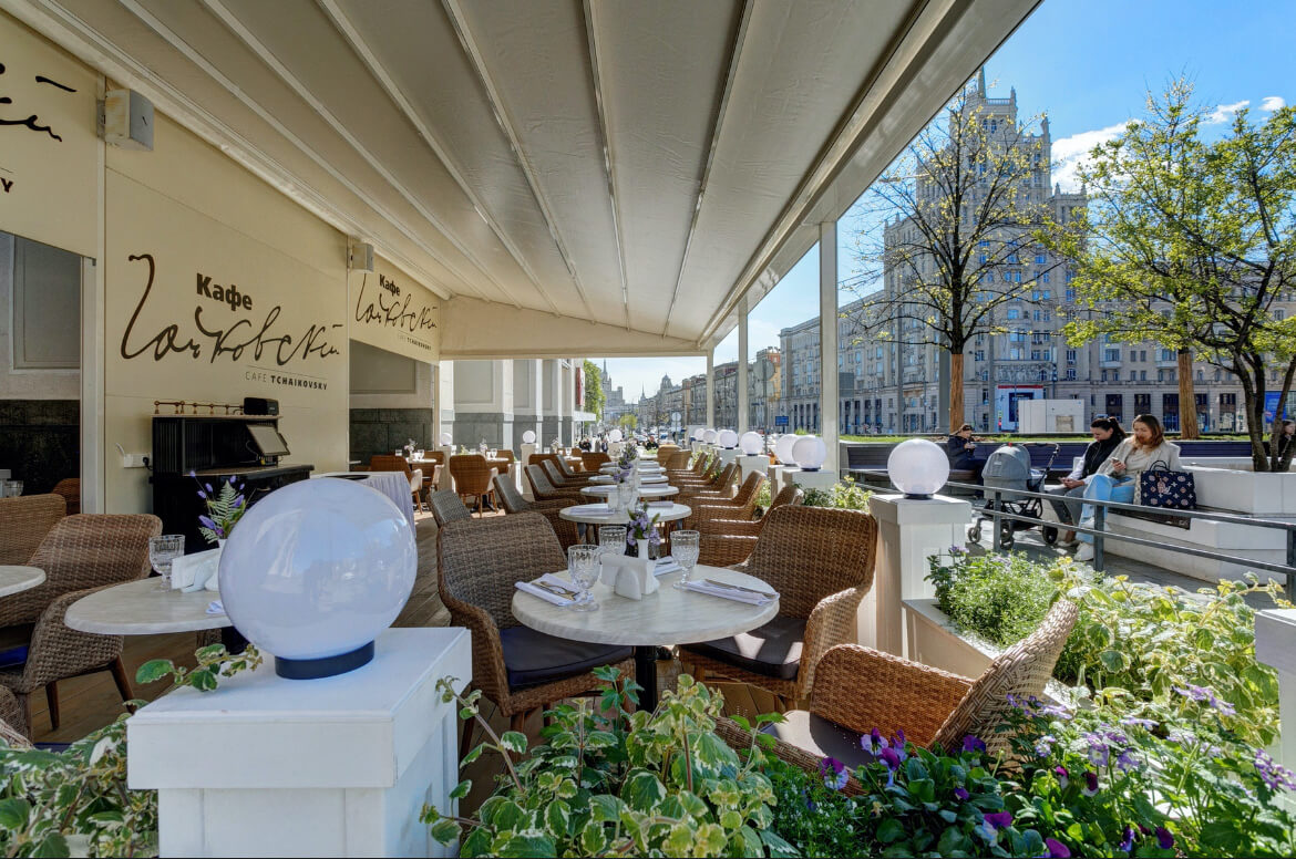 О том, что проводить лето можно культурно, напоминает Кафе Чайковский. Отчего бы не отправиться, скажем, на комедийного «Дядю Жоржа» в Сатирикон, перед этим заглянув за филе палтуса в конверте (1360₽) или цветную капусту с чимичурри (680₽) на просторную веранду? А, может, более привлекательной вам покажется один из музыкальных десертов, что придумала шеф-кондитер Вера Хромова: «Полёт шмеля» (680₽) и «Щелкунчик» (640₽). Их, правда, заказывать лучше уже после концерта в Филармонии — всему своё время, но, непременно, с видами на оживлённую Триумфальную площадь.