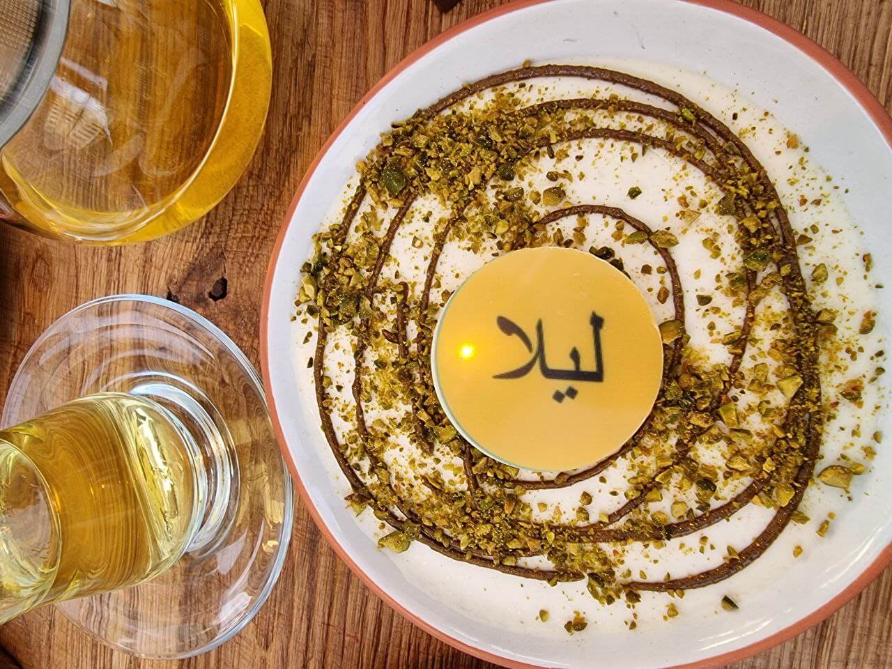 Не секрет, что в арабских странах любят сладкое. Вот и мы решили напоследок побаловать себя десертами. Арабский пудинг с фисташками и апельсиновой водой (750₽) олицетворяет вкус таинственного Востока. Готовят блюдо из молока, сахара и рисовой мукой, в результате чего получается кремовая, слегка желейная текстура. Мелкая крошка из фисташек и шоколадная эмблема с надписью ЛИЛА на арабском отлично украшают и дополняют десерт. Если быть краткими: буквально за 5 минут он был съеден до последней крошки.