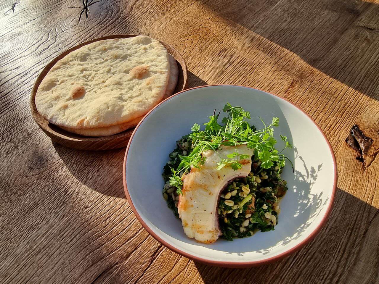 Табуле с осьминогом (790₽), как и положено одному из самых популярных восточных салатов, состоит и крупного булгура, большого количества действительно свежей и ароматной зелени и качественного оливкового масла. Осьминог по праву является звездой блюда: сочный, мягкий, одним словом, приготовлен на круглую 5. Еще одно блюдо в копилку рекомендаций в этом заведении!