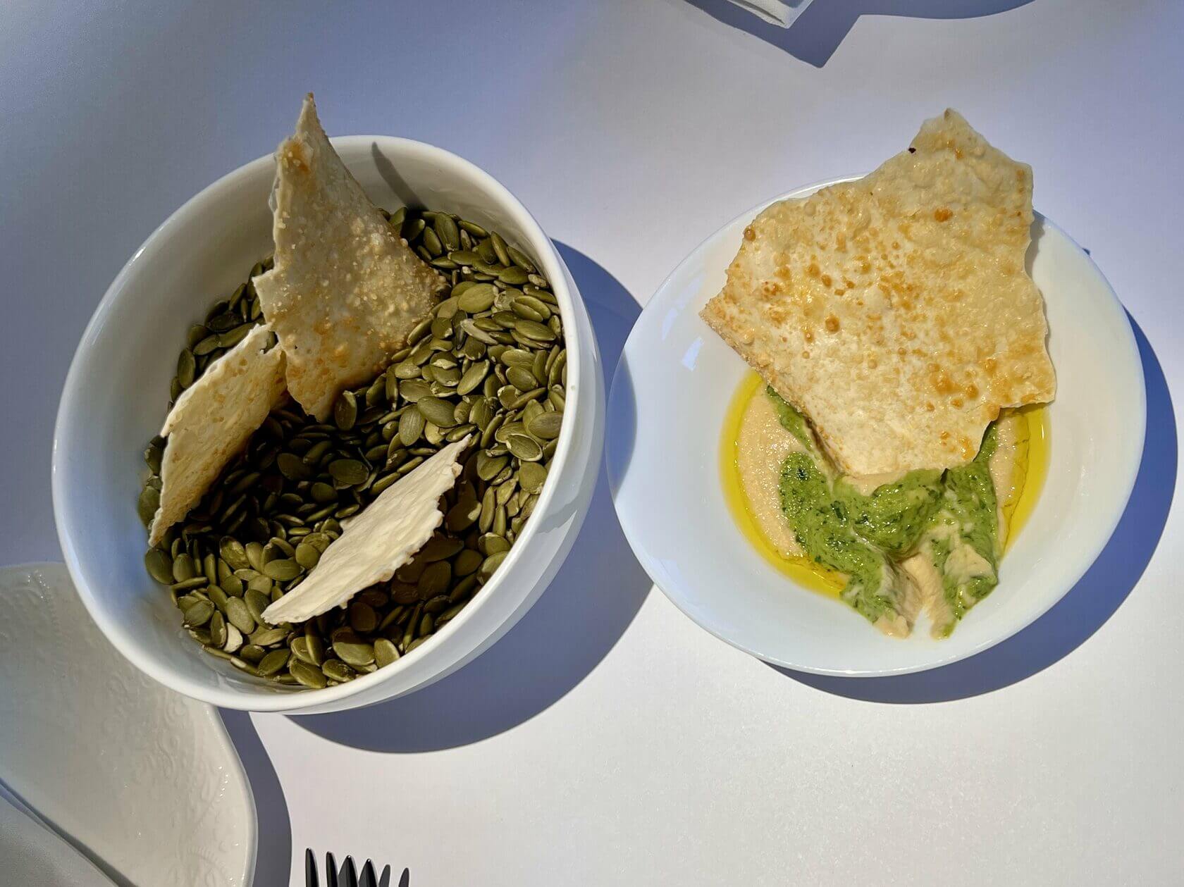 К плюсам стоит отнести и комплименты: в начале трапезы каждому столику подают хумус, вместе со счётом предлагают лимончелло собственного приготовления, а к завтраками наливают игристое.