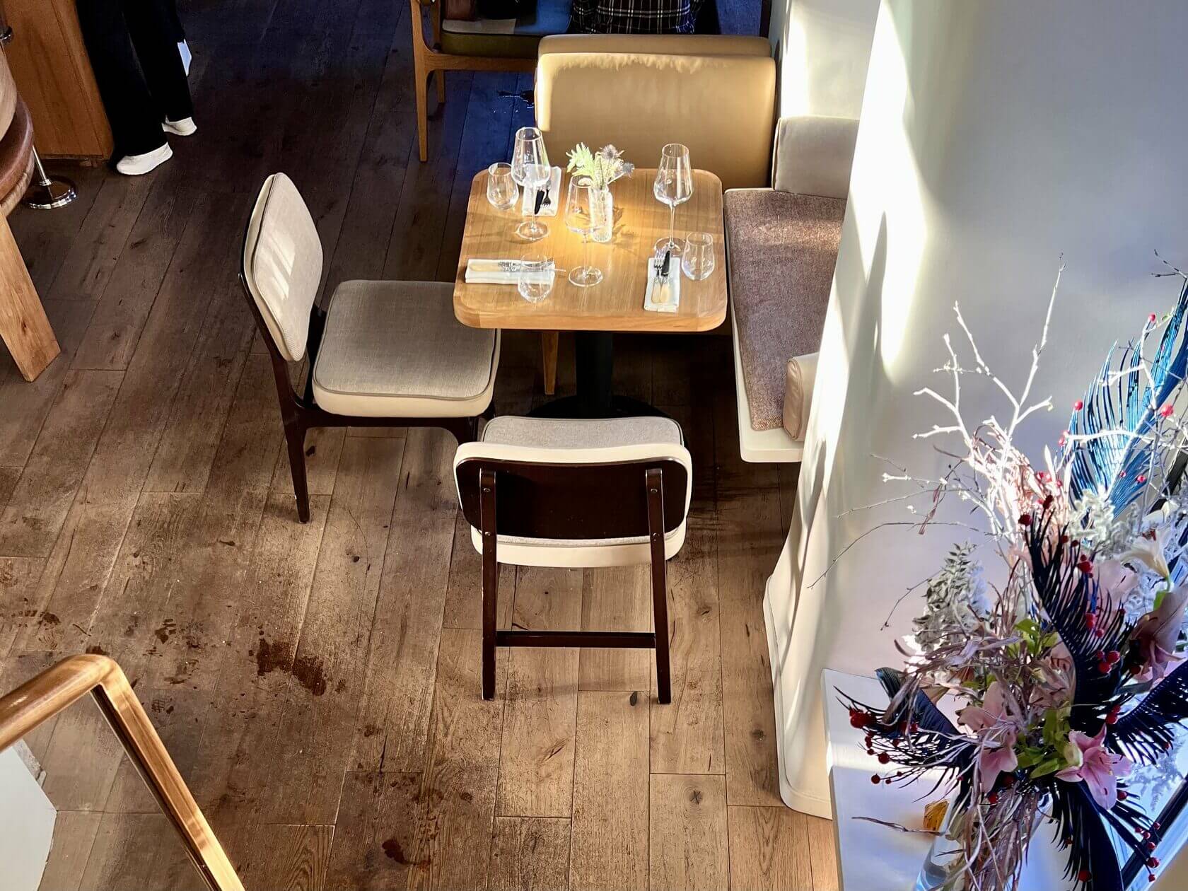 От минусов тоже никуда не деться: мало пространства между столиками, особенно на втором этаже. Расслабиться и тихо посидеть — не выйдет. Место про суматоху, вспышки камер, нарядных гостей, гулкие разговоры и юрко лавирующих официантов между столами. Лавируют официанты, правда, уже больше года, при этом старательно пытаясь не задевать стулья с довольными гостями. Что ж, успех и «звездность» вполне объяснима: модная кухня, цены чуть ниже соседних Патриков, и праздничный дух в интерьере.