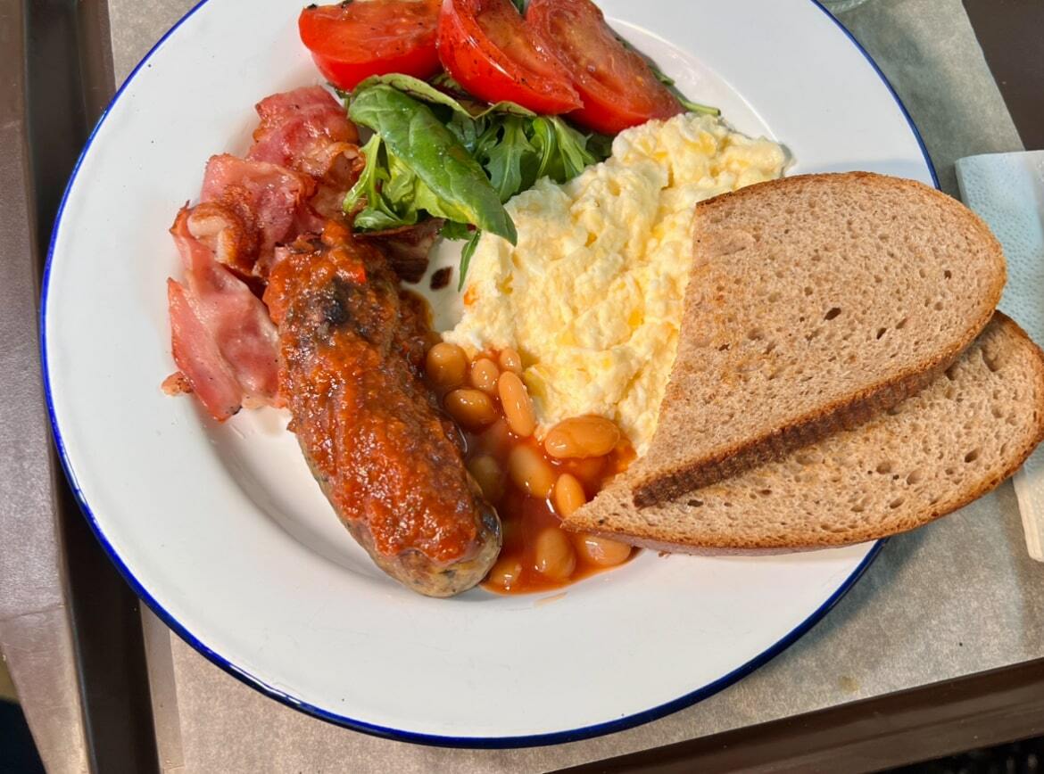 Завтракам тоже нашли место: всего три позиции, но доступные весь день. Самая сытная — «Grand Breakfast» со скрэмблом, беконом, томатами на гриле и жареной тулузской колбаской, где только мясо и специи. И если визуальная составляющая у тарелки оказывается хромой, то сочность мяса отвлекает внимание на себя, увлекая натуральностью вкуса.
