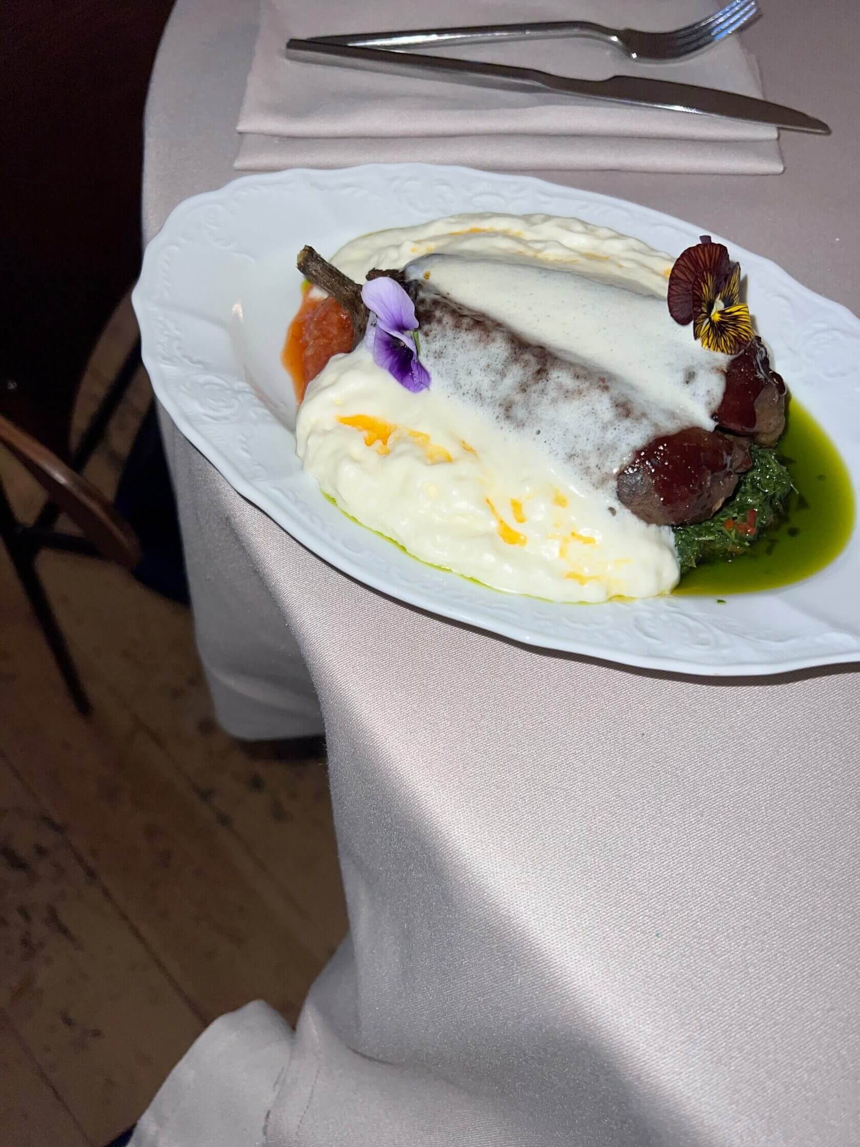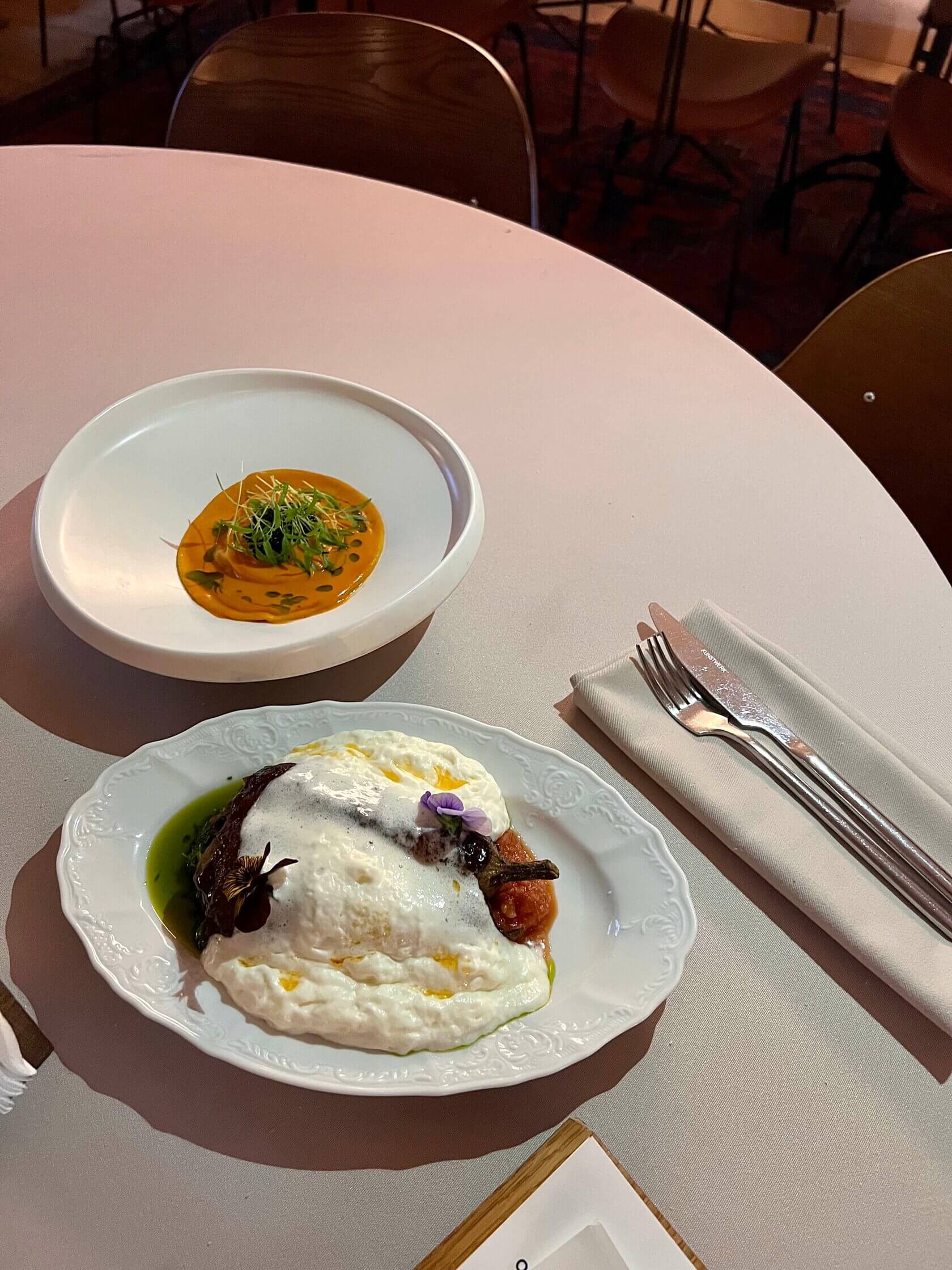 Для полноценного ужина можно добавить равиолло с креветками с соусом биск (590₽). Небольшая, но сочная порция.