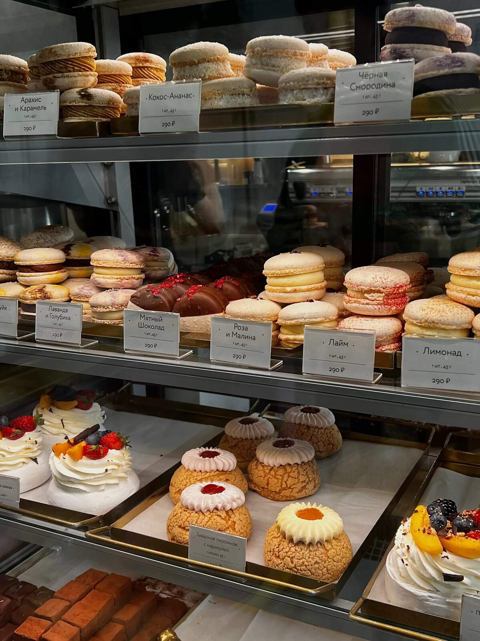 Переступив порог двухэтажного особняка, первое, на что обращаешь внимание — огромная витрина с десертами. Настоящий телевизор, где можно переключать «десертные» каналы с шести видов «Наполеона» до фирменных ирисок «солёная карамель"одним поворотом головы.