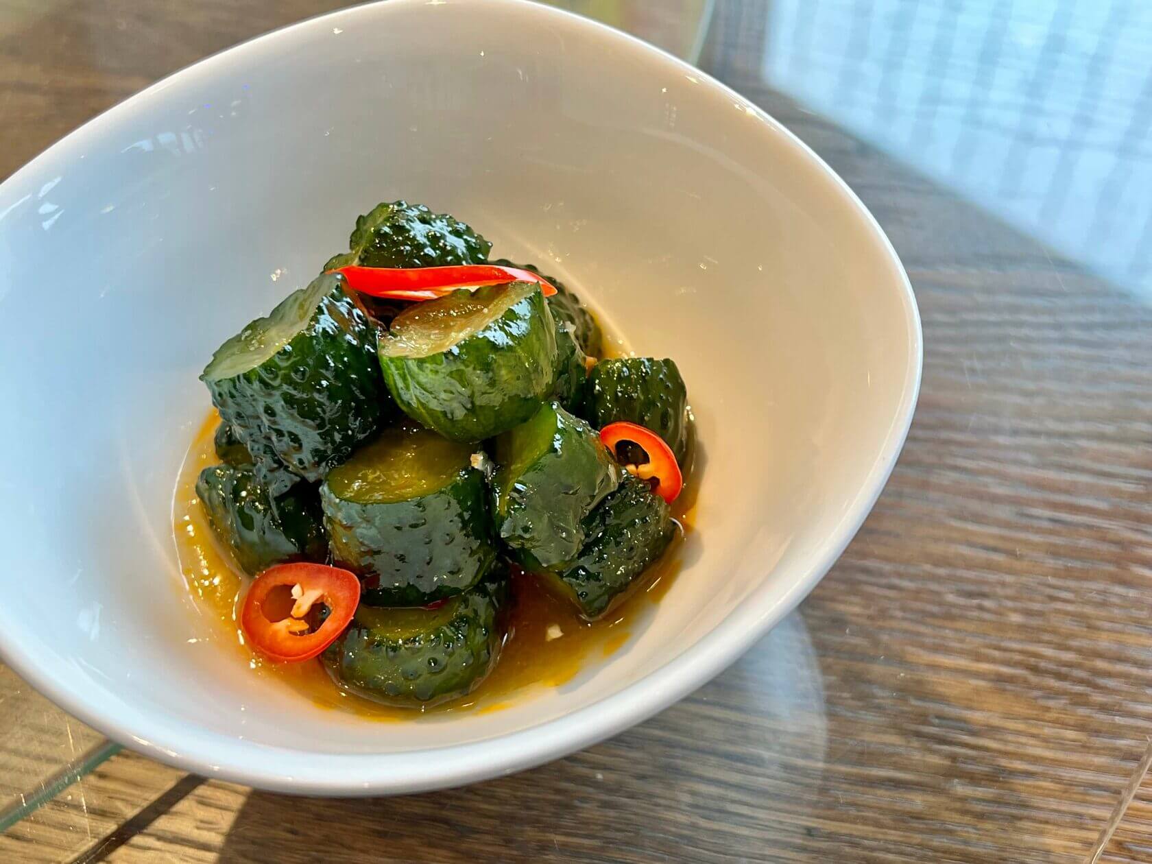 Может показаться, что китайские трапезы совсем не обходятся без мяса, однако, в Поднебесной обожают овощные и вегетарианские блюда. Среди тех, что надо попробовать: помидоры черри в соусе кимчи (410₽), огурцы маринованные по старинному тайваньскому рецепту (440₽) и «Восемь сокровищ» (610₽) — большое ассорти на воке.