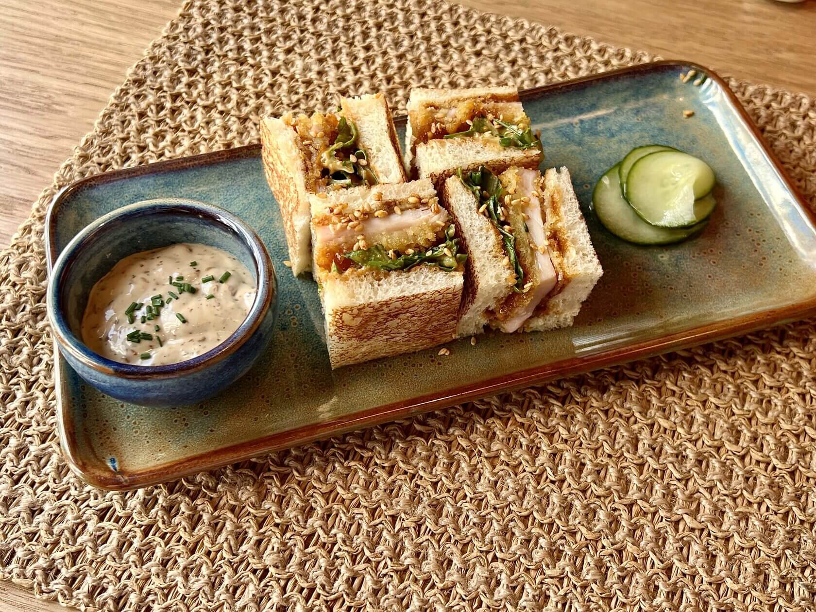 Кацусандо с курицей (480₽) — мягкий японский хлеб хоккайдо, нескромная прослойка соусом и нежные кусочки мяса.