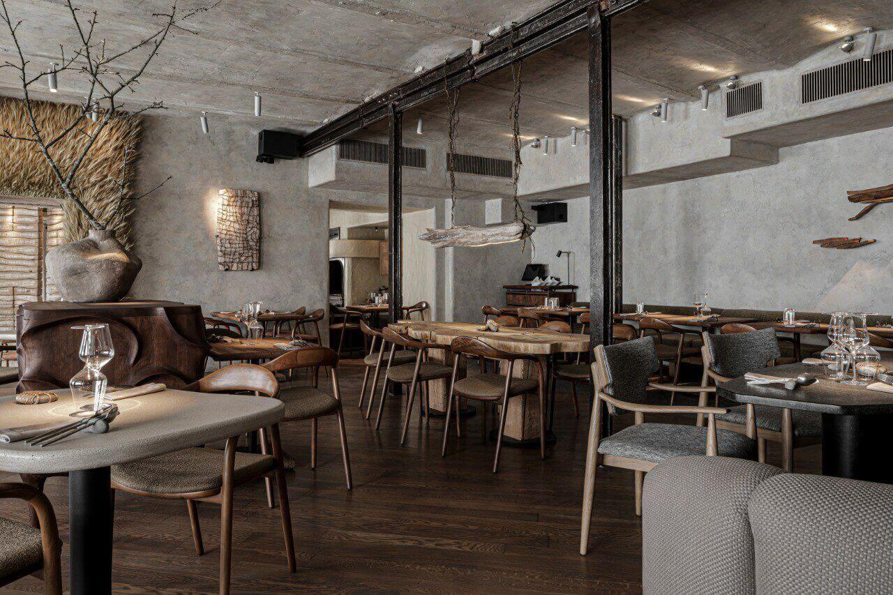 Интерьер ресторана символизирует ландшафтную карту нашей страны. Гость, зайдя в ресторан, отправляется в «мини-путешествие» по России, где горы и океаны сменяются полями и лесами.