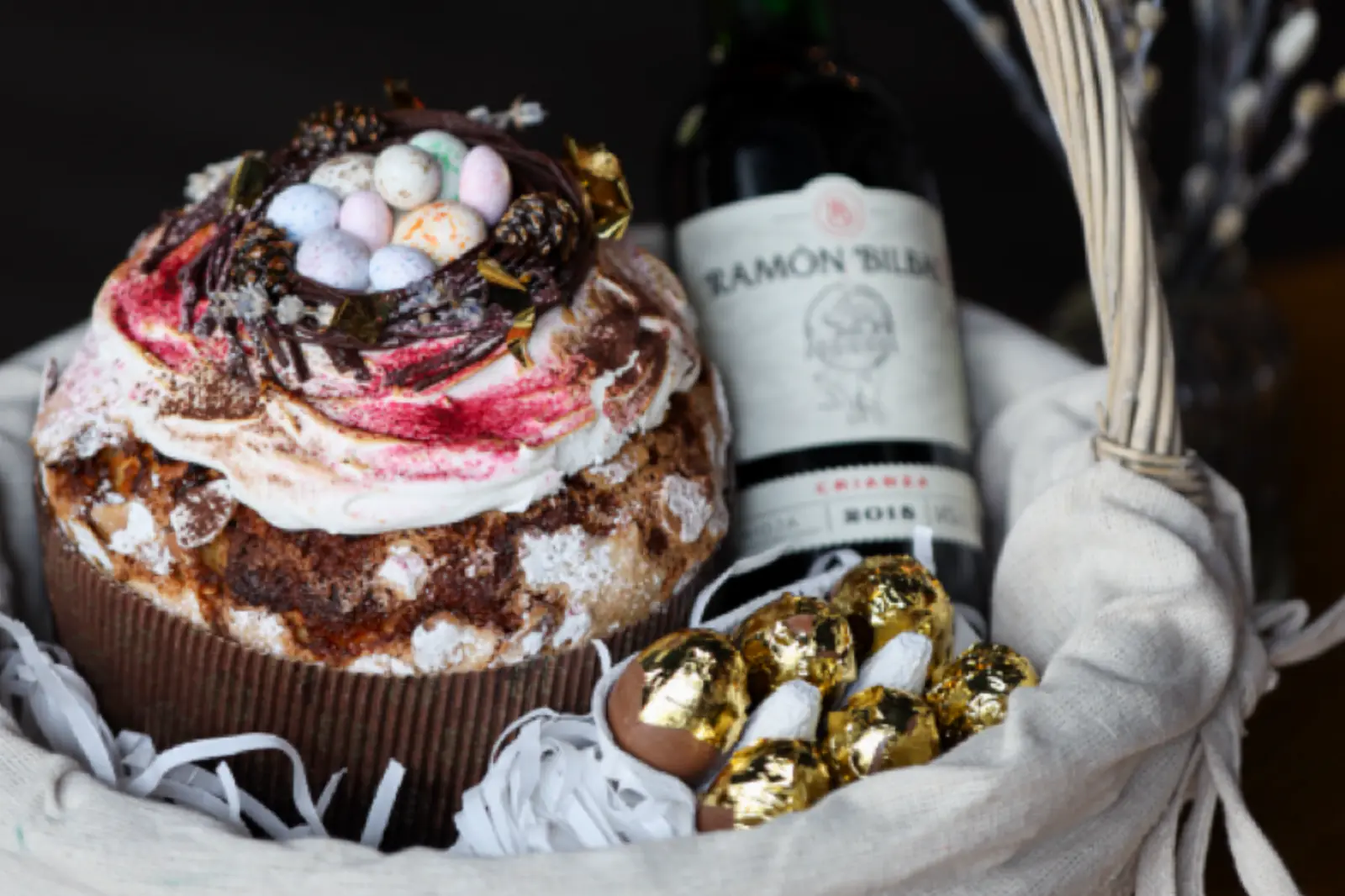 И есть отличные пасхальные корзины (10.000₽), внутри которых - кулич, мини-бутылка вина и шоколадные яйца. Подробности на сайте ресторана.
