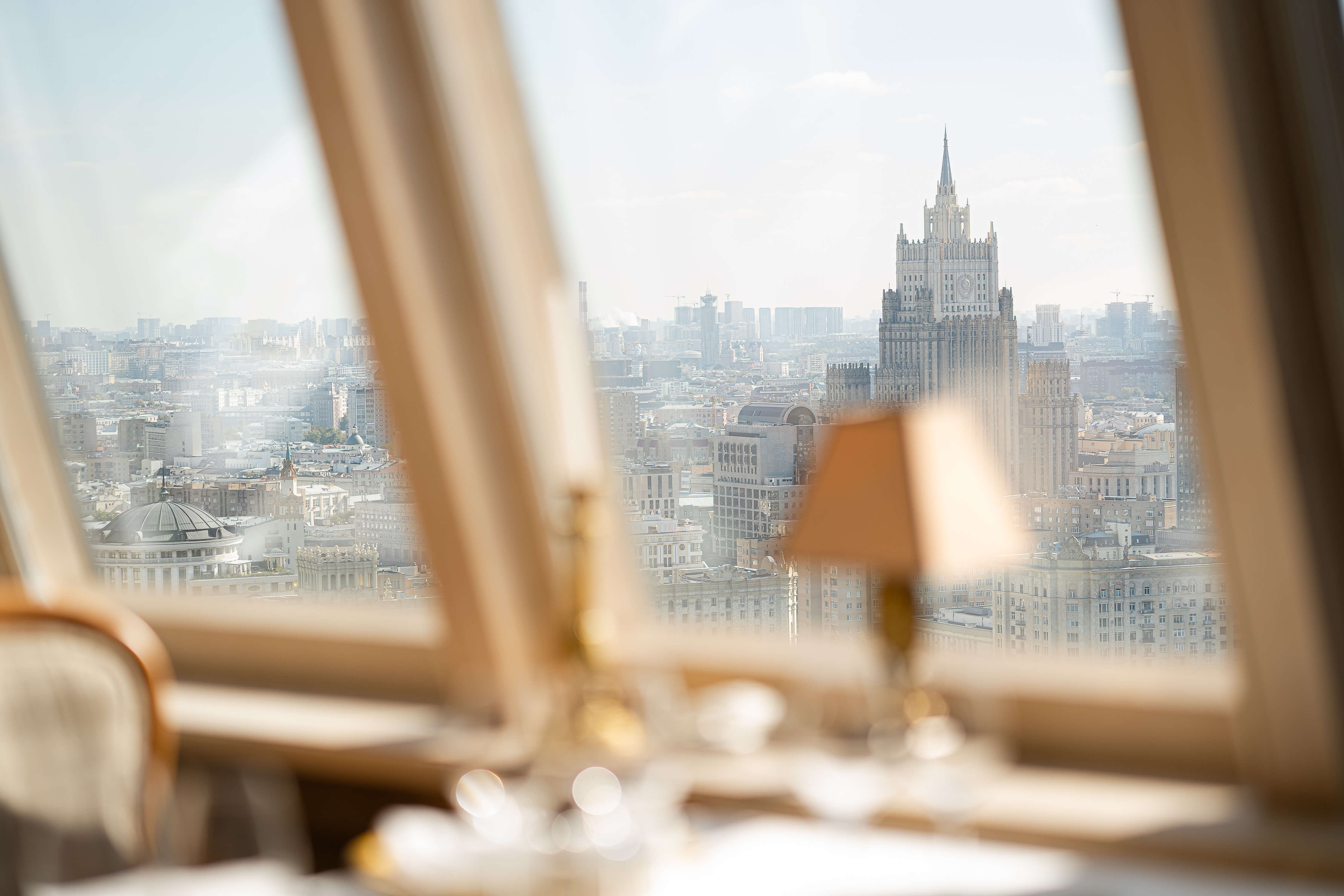 Наблюдение за салютом с панорамных террас 29-31 этажей. Вид на МИД, Лужники, Останкинскую башню. Итальянская кухня от шефа Джузеппе Дави дополняет праздничную атмосферу.