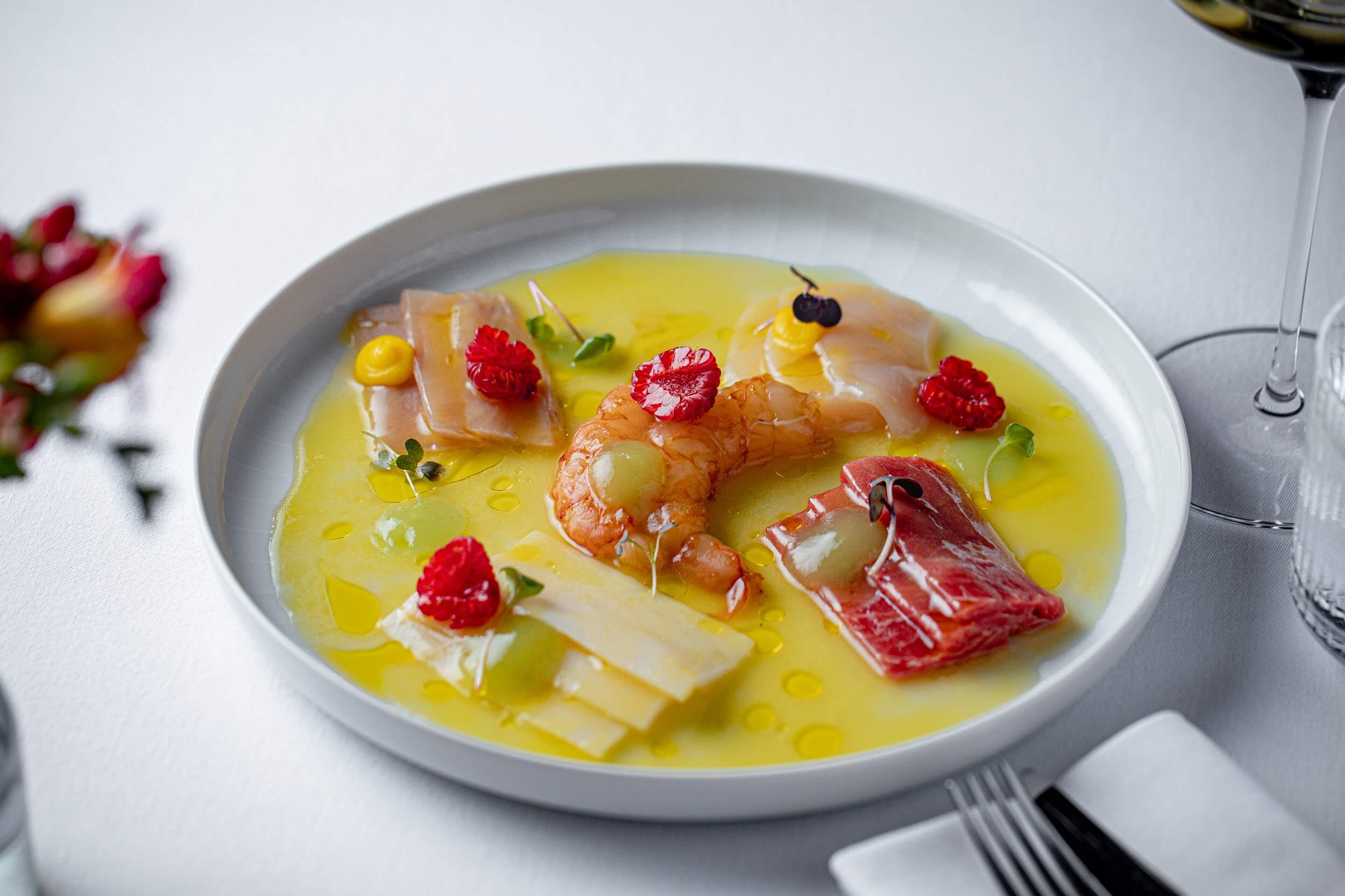 Летняя карта от Ивана Зорина: гаспачо с камчатским крабом, папарделле с морским ежом. Шеф представил меню, где каждый штрих — ода лету, лёгкости, свежести и, конечно, изысканным сочетаниям.