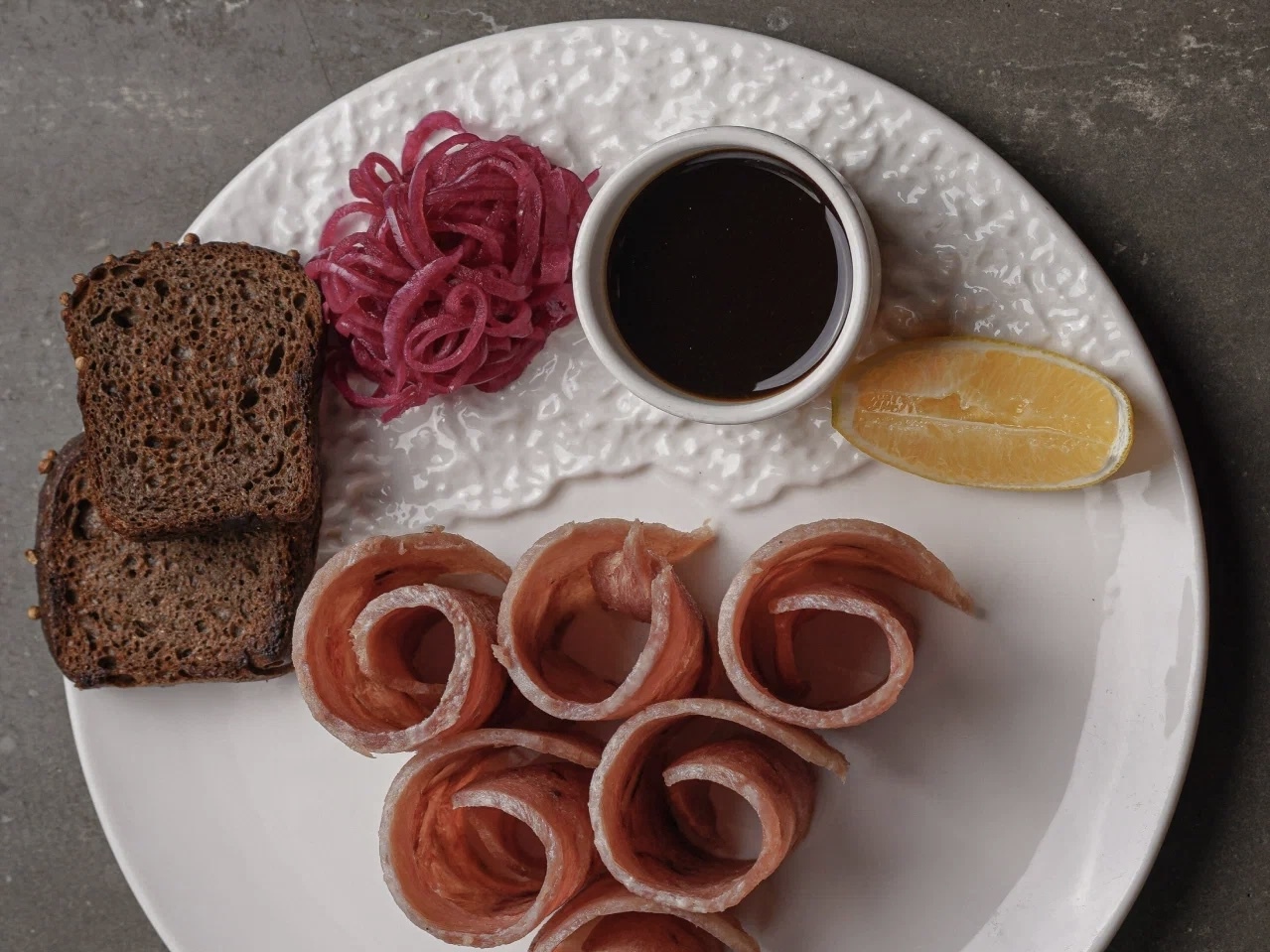 • татаки из говядины с чипсами из чеснока (1150₽);