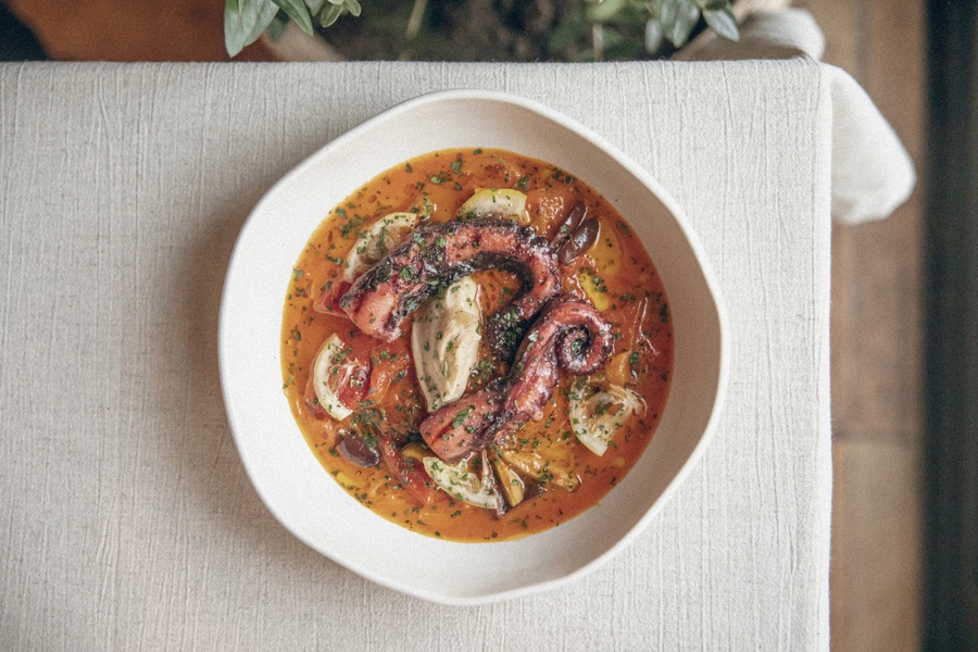 • осьминог на гриле с соусом из лемонграсса (2100₽);