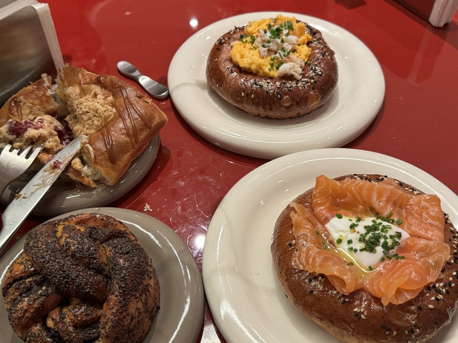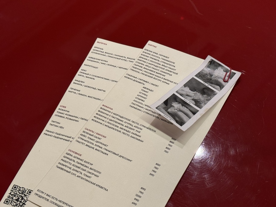 Среди завтраков — бублики с трюфелем (890₽), драники с лососем (990₽) и пять видов фокаччи: от классического сочетания — с мортаделлой и песто (850₽) до более энергичного — с пастрами, огурцом и айоли (850₽).