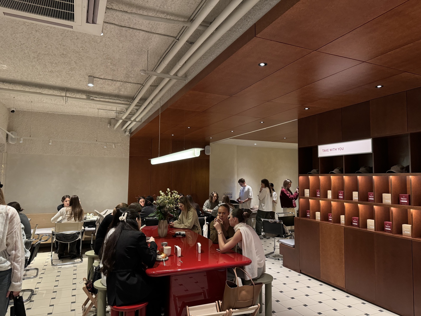 Новое место на безлюдной улице Чаплыгина будто вдохнуло в неё жизнь, и теперь здесь более чем оживлённо: на входе частенько просят постоять в очереди, пока появится свободный стол (это занимает от 5 до 20 минут), а внутри — или едят, или фотографируются. Оно и понятно: место вышло действительно модным и стильным. Минимализм в дизайне, сочетание цвета, текстур, мебель геометрических форм и обилие воздуха — за этим сюда и съезжаются со всей Москвы.