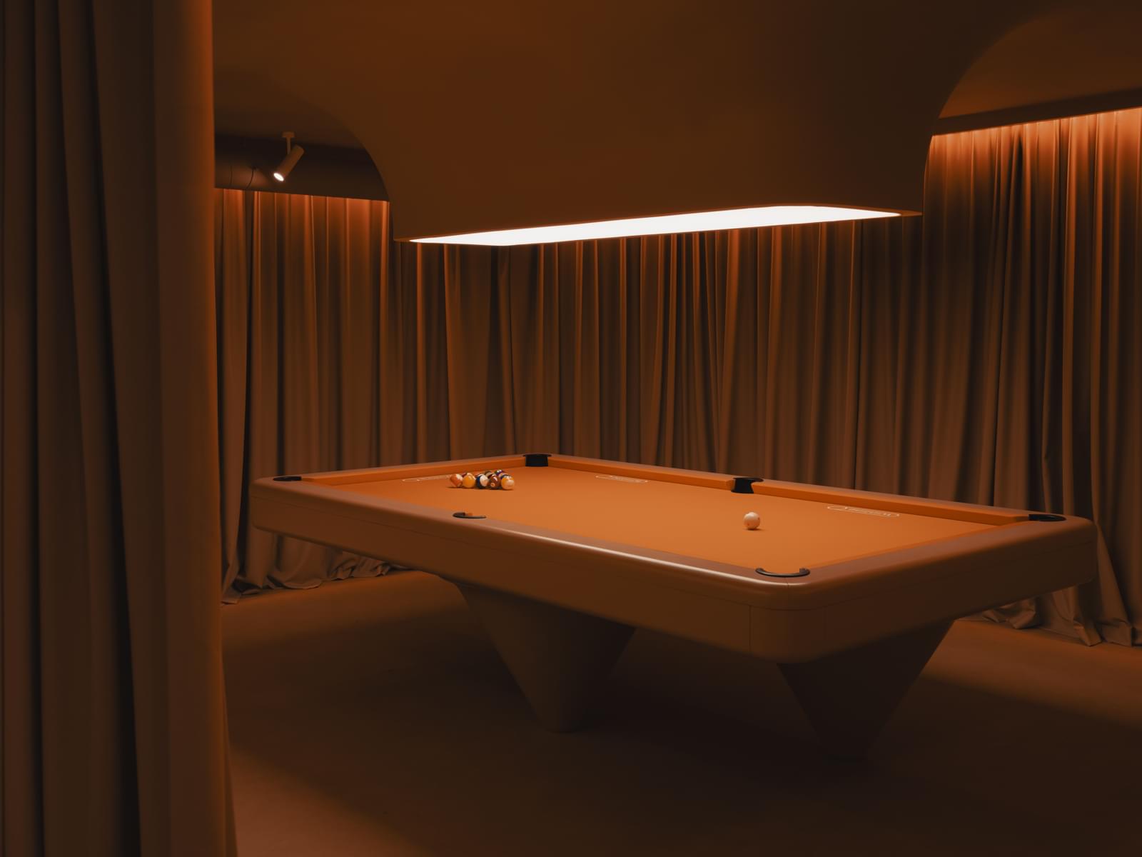Billie расположился в историческом здании XIX века, а внутри пространство невероятно футуристичное: первый в России трехногий стол для американского бильярда, монохромный серый гастрономический зал, где весь акцент на еду и напитки, и красивые деревянные панели в зале с русским бильярдом.