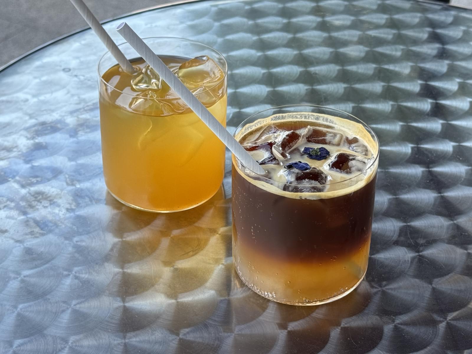 Среди любимых напитков публики из раздела напитки — авторский эспрессо-тоник с персиком и орхидеей (450₽), украшенный цветком, а также освежающий персиковый айс-ти (400₽).