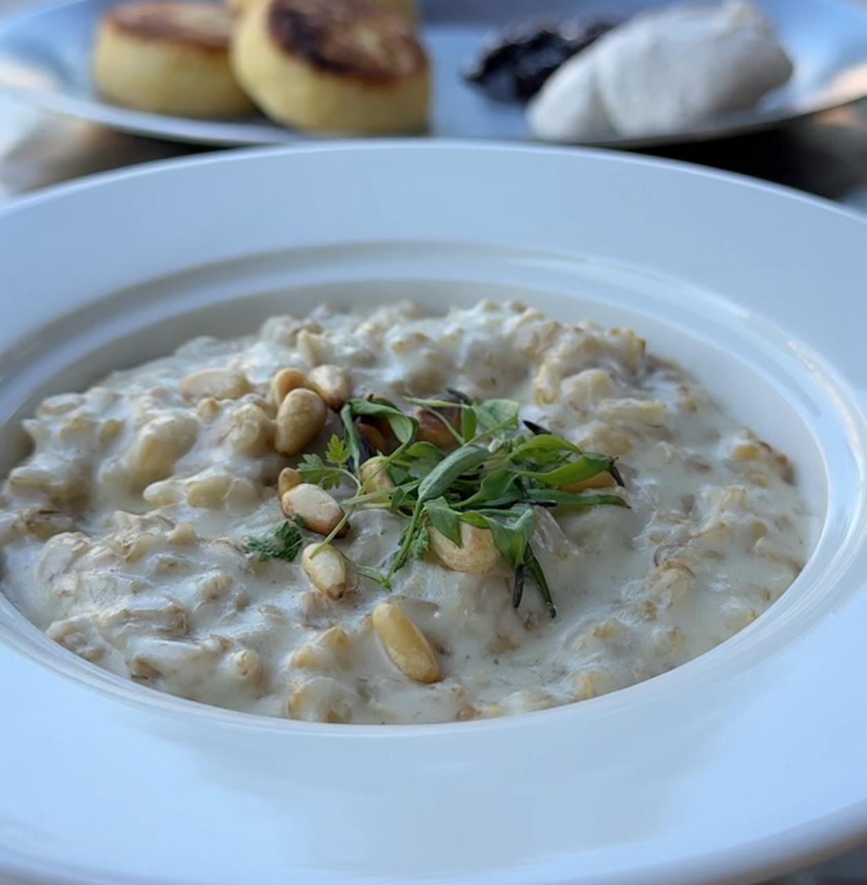 Коллегам досталась модная московская овсянка с пармезаном и кедровыми орешками (580₽). Идеальный поридж, с которым можно почувствовать себя английским аристократом — всего за 580 рублей в центре Москвы.