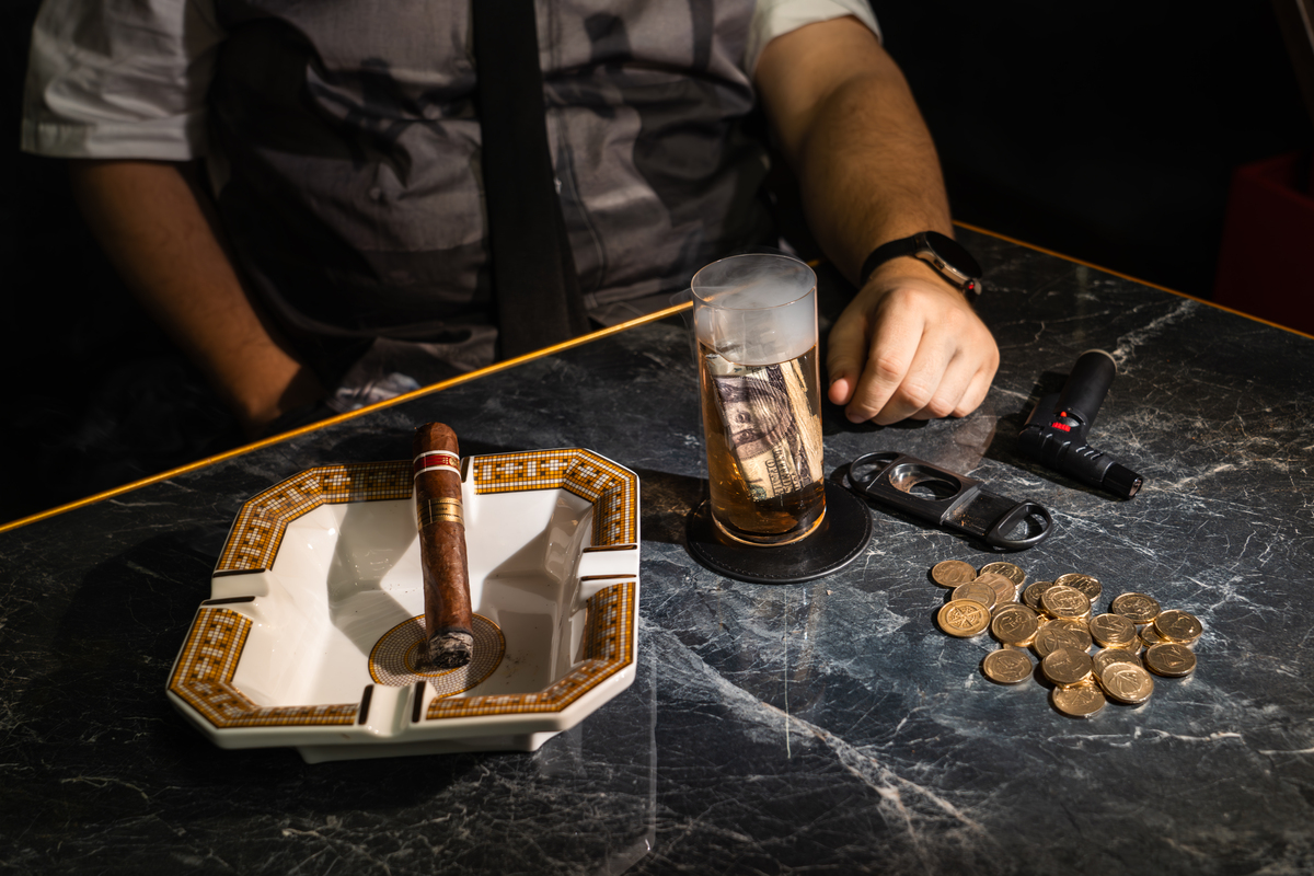 «Финансист» — коктейль, воплощающий атмосферу успеха и достатка, как и история Фрэнка Каупервуда – главного героя романа Драйзера. Этот твист на классическую Маргариту в высоком хайболе сочетает в себе дымные ноты кордиала копченой груши, сухость хересного вина и кислую сладость ликера шисо, создавая сложный и благородный вкус. Купюра внутри льда, застывшая во льду, символизирует материальные ценности, к которым стремится главный герой. Коктейль окуривают смоки ганом, дымка от которого напоминает о сигарном дыме в кабинетах воротил бизнеса.