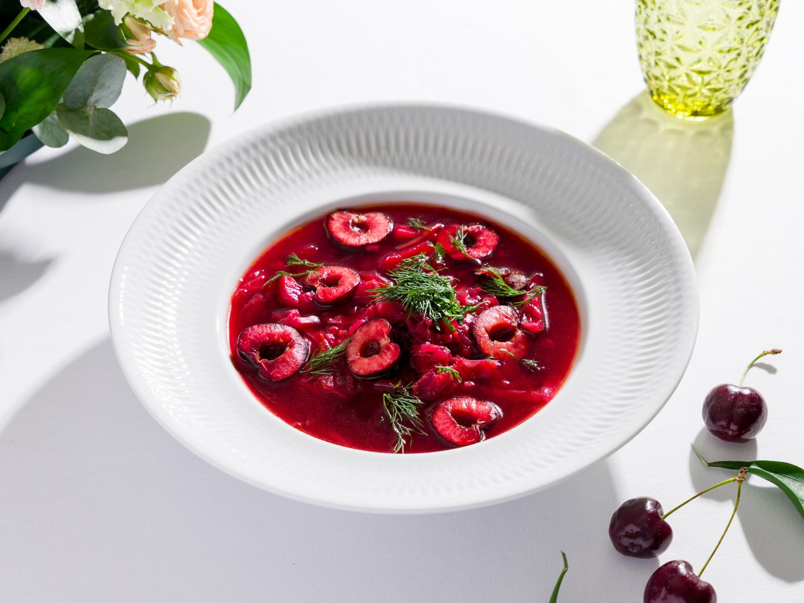 Кому борща? Да, с черешней! В Kislovsky Taste&Place придумали дымчатый борщ с черешней и черносливом. Шеф-повар Виталий Хегай готовит его на оленине и ароматизирует костровым дымом. Но надо поторопиться, в меню борщ только на время летнего фестиваля Moscow Restaurant Week.