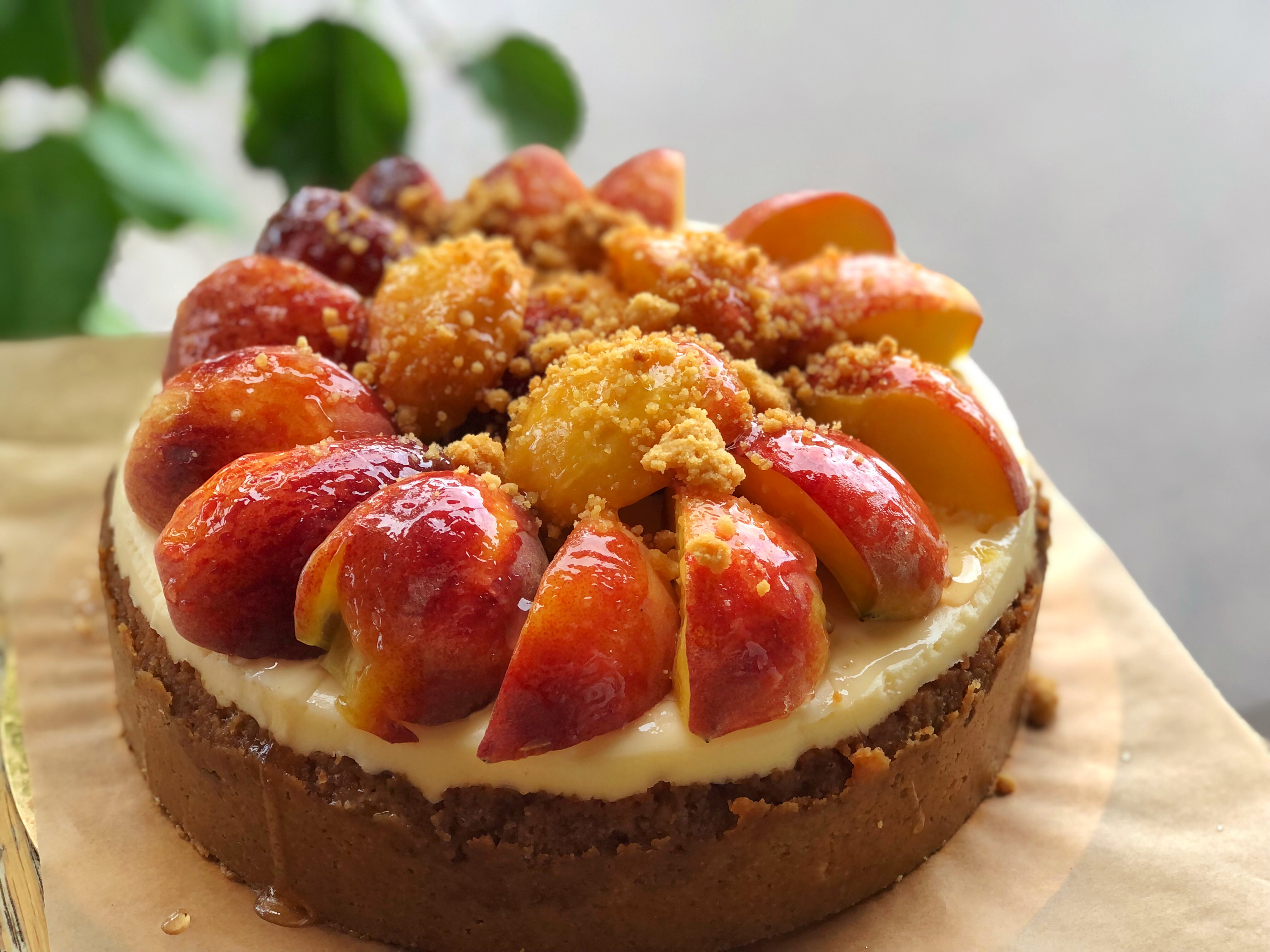 Классический чизкейк украшают сочными спелыми половинками свежих персиков, посыпая сверху хрустящим крамблом. А шоколадный тарт из тонкого песочного теста и шоколадного крема щедро украшают крупной сладкой черешней.