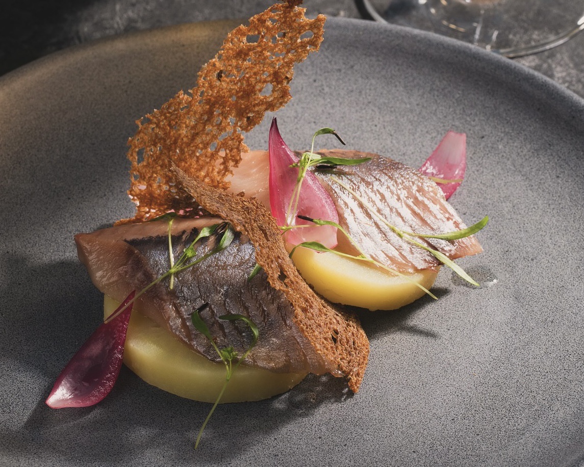 Селедка с картошкой, уха, голубцы… Три золотых стандарта домашнего застолья не чужды были и шефу Алексею Гурову из ресторана Муссон. От детских воспоминаний к взрослым подачам: мурманскую селедку подают на картофеле, добавив к ним тонкий бородинский чипс, а карельскую уху с увесистым куском лосося в центре тарелки.