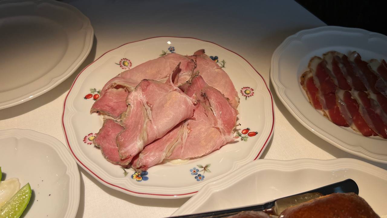 Вяленая утка (850₽) и свиная шея — закуски «в точку». Цена «666₽» — редкая удача, брали бы повторно.