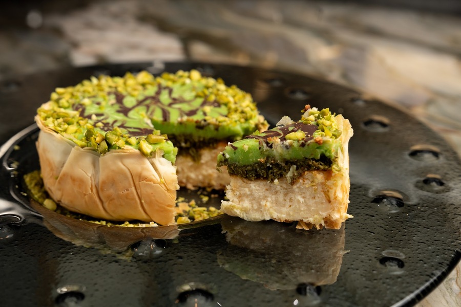 В ERWIN.РекаМореОкеан шеф-кондитер Татьяна Маркина создала авторскую интерпретацию вирального десерта – «Дубайский чизкейк» (1200 рублей). Основой угощения стали тончайшие листы хрустящего теста фило с ванильно-сливочным сыром и прослойкой в виде жареного теста катаифи сфисташковой пастой. Начинка выполнена из ганаша на белом шоколаде, а украшением служит золотистая дробленная фисташка.