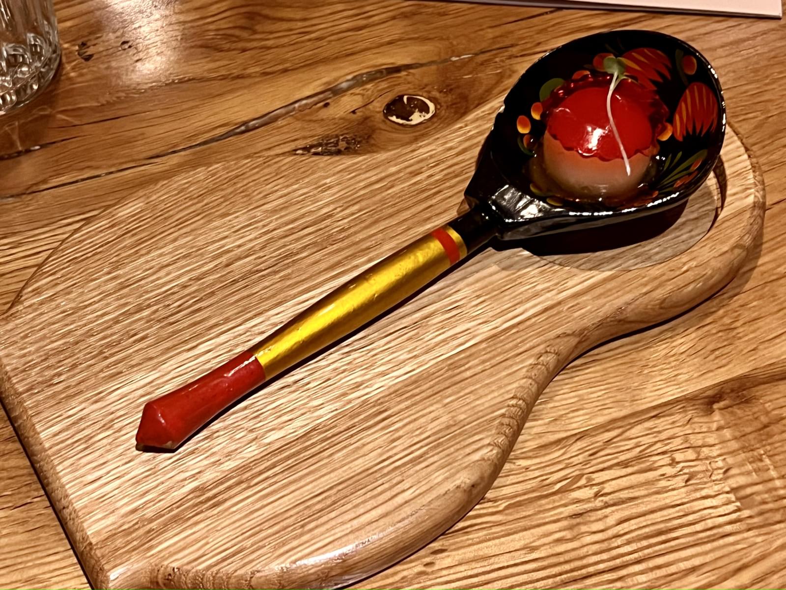 А вот квашеную капусту выкладывают на расписные деревянные ложки в форме сорбета, предлагая освежить рецепторы и вспомнить затейливую историю, что произошла 1 марта 1914 года на Кузнецком мосту, куда вышли два элегантно одетых молодых человека, в петлицах твидовых сюртуков которых вместо бутоньерок алели расписные деревянные ложки. Художников, эпатировавших своим невинным жестом Москву, звали Казимир Малевич и Алексей Моргунов. Команда поваров, дающих сет «Русский авангард», к слову, тоже встречает гостей в кителях с расписными деревянными ложками.