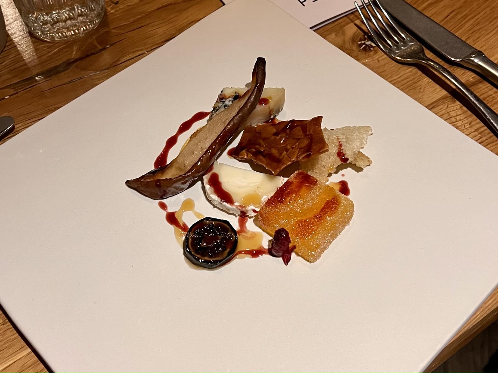 Маленькие радости подают предпоследним курсом под веселую заметку от шефа Влада Пискунова, что именно так и выглядят наши «радости, когда он приходит уставшим с работы домой и накладывает в тарелку всего и понемногу: сыров, фруктов, галету и обязательно подсушенные корочки хлеба в сахарном сиропе. Услада для глаз и рецепторов, каким бы вы себя гурманом ни считали.