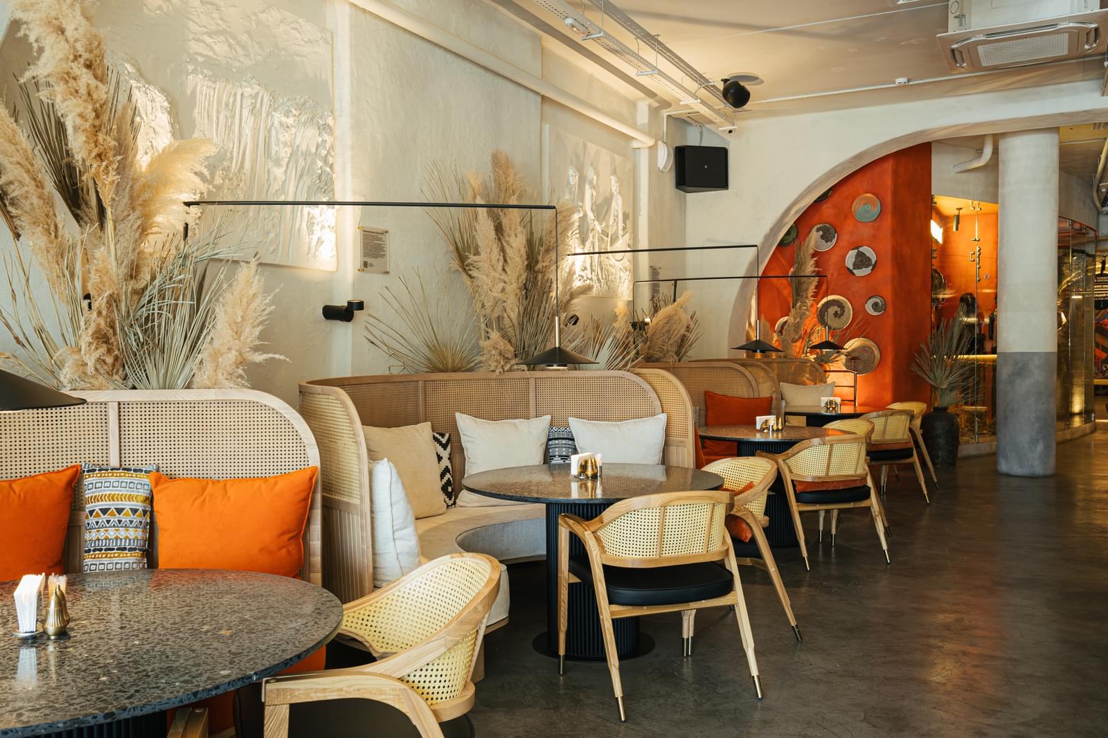 Меню — микс вкусов Израиля, Ливана, Эфиопии и Турции, но не пугающий, а влюбляющий. Пробуйте козий сыр с солеными лимонами, сфиху, вяленый фланк — и не забудьте камеру, здесь красиво в каждом углу.
