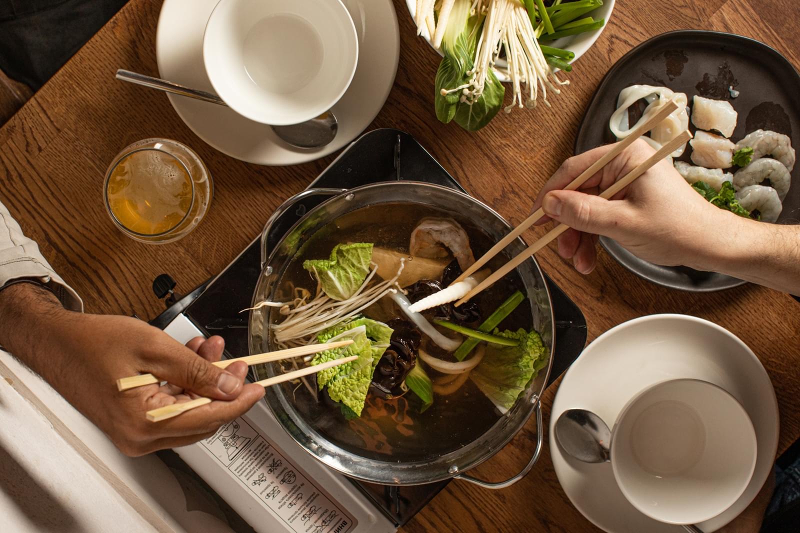 Шеф-повар Сергей Иванов придумал к празднику специальное меню на несколько блюд под азиатские коктейли. Самое интересное, пожалуй, это «Хо-Го» или китайский самовар (2600₽). За стол приносят кастрюлю с кипящим бульоном, в котором гости сами варят выбранные продукты. На выбор можно заказать мясной вариант с бульоном от Фо Бо или с морепродуктами с бульоном от Том Ям. Кроме этого, в меню: Китайский салат «Тигр» (Лао Ху Кай, 450₽) - зеленый салат с фунчозой и арахисом; широкая лапша «Чау Фань» с кусочками говядины в соево-кунжутном соусе (730₽), рыба-хризантема в кисло-сладком соусе (630₽) и вонтоны с говядиной в перечном масле (550₽). А в барной карте: китайский негрони (700₽), йогурт-личи (700₽) и мандарин-ананас (700₽).