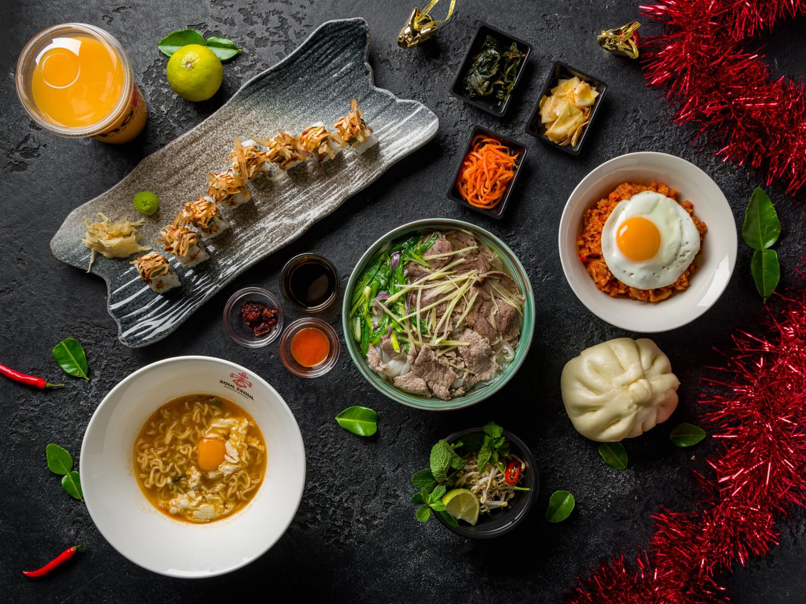 «Вкус дракона» – новогоднее меню от резидентов Центрального рынка, которое действует с 27 января по 2 февраля. Начинать праздновать следует уже с обеда – ланчи в азиатском стиле готовят корнеры Soul Seoul (лапша, кимпаб и бульон за 650₽) и Naturo Ramen (тори рис, чука с ореховым соусом, тапиока и зеленый чай за 560₽). Или просто главный азиатский суп Фо с говядиной, лапшой и зеленью (560₽) от PhoBo.