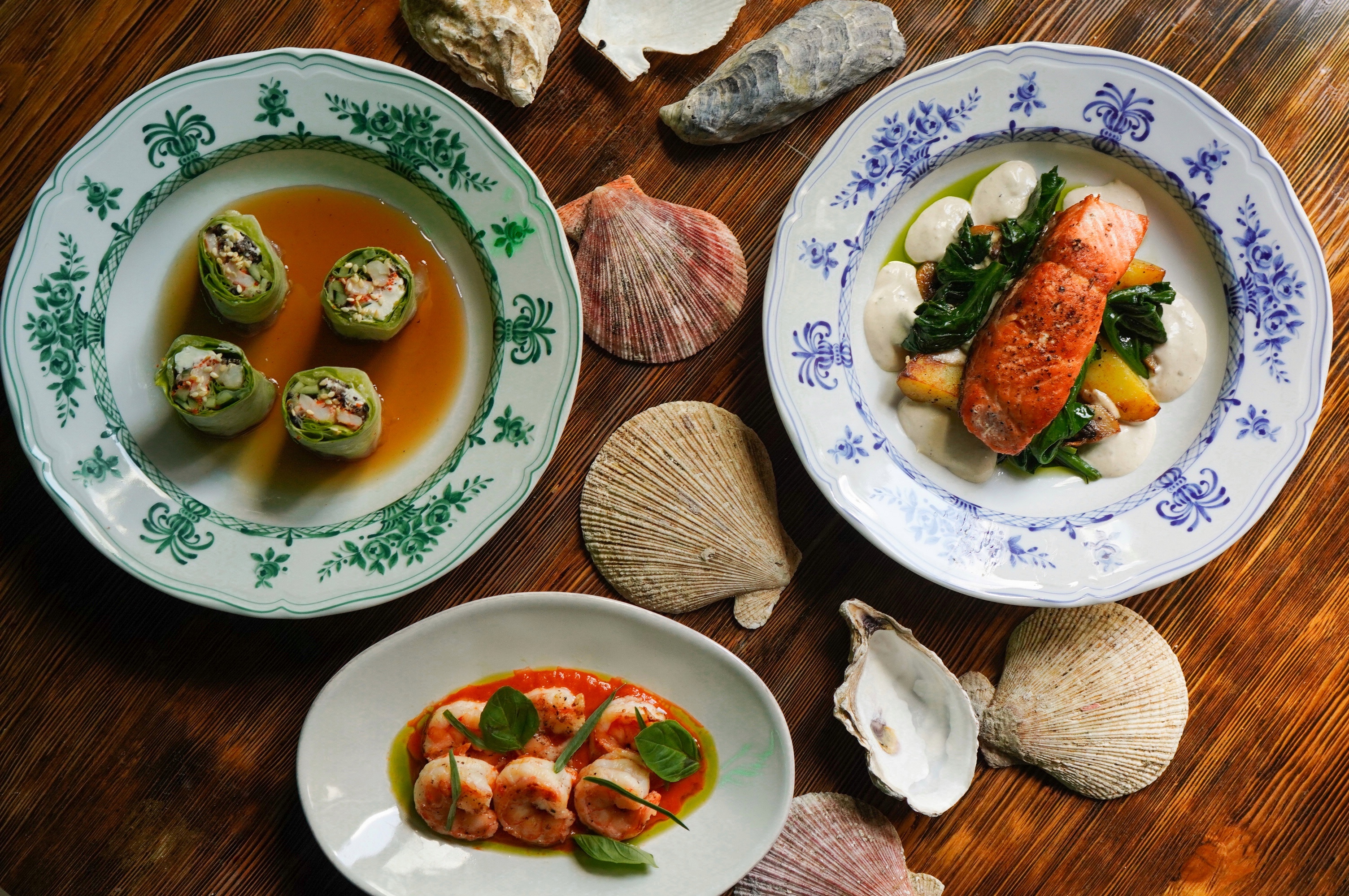 Сеть баров “Винный Базар” приготовили сет из трех блюд: спринг-ролл с креветкой, свежими овощами и тобико в соусе понзу (650 руб.), креветки в соусе ромеско (650 руб.) и Мурманскую форель с сезонными овощами и грибами, молодым картофелем и соусом тоннато (1290 руб.). Также 20 августа бренд-шеф Владимир Шамоян и шеф-сомелье Жанна Киликиди проведут морской ужин в “Винном Базаре” на Петровском бульваре. Стоимость ужина — 5500 рублей;
